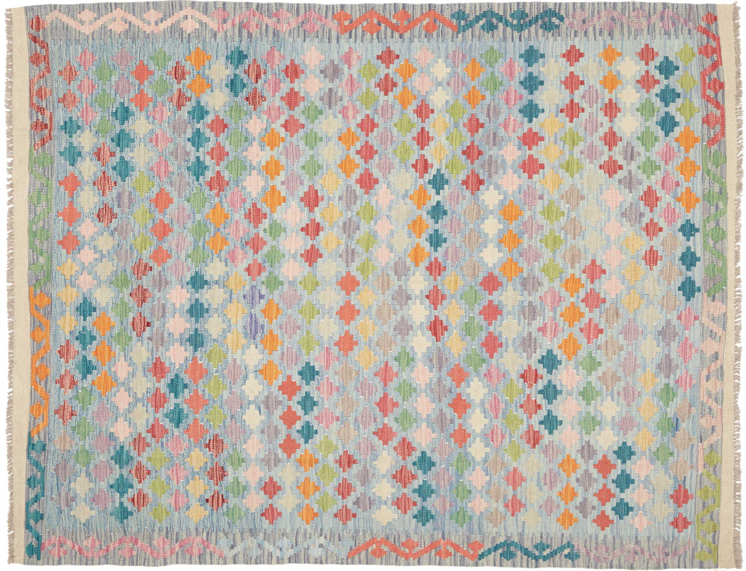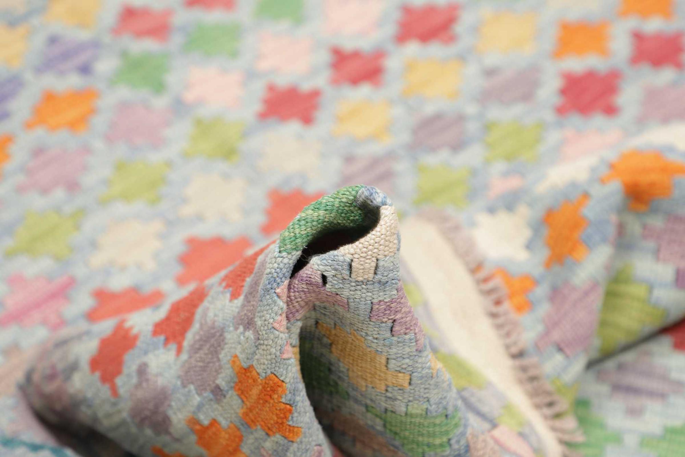 Questo kilim - afghano tessuto a mano è bello sia per i suoi colori e sia per il modello tipico. È stato tessuto a mano in Afghanistan con il 100% di lana. È anche robusto e durevole. Un vero e proprio profitto per voi e per la vostra casa.