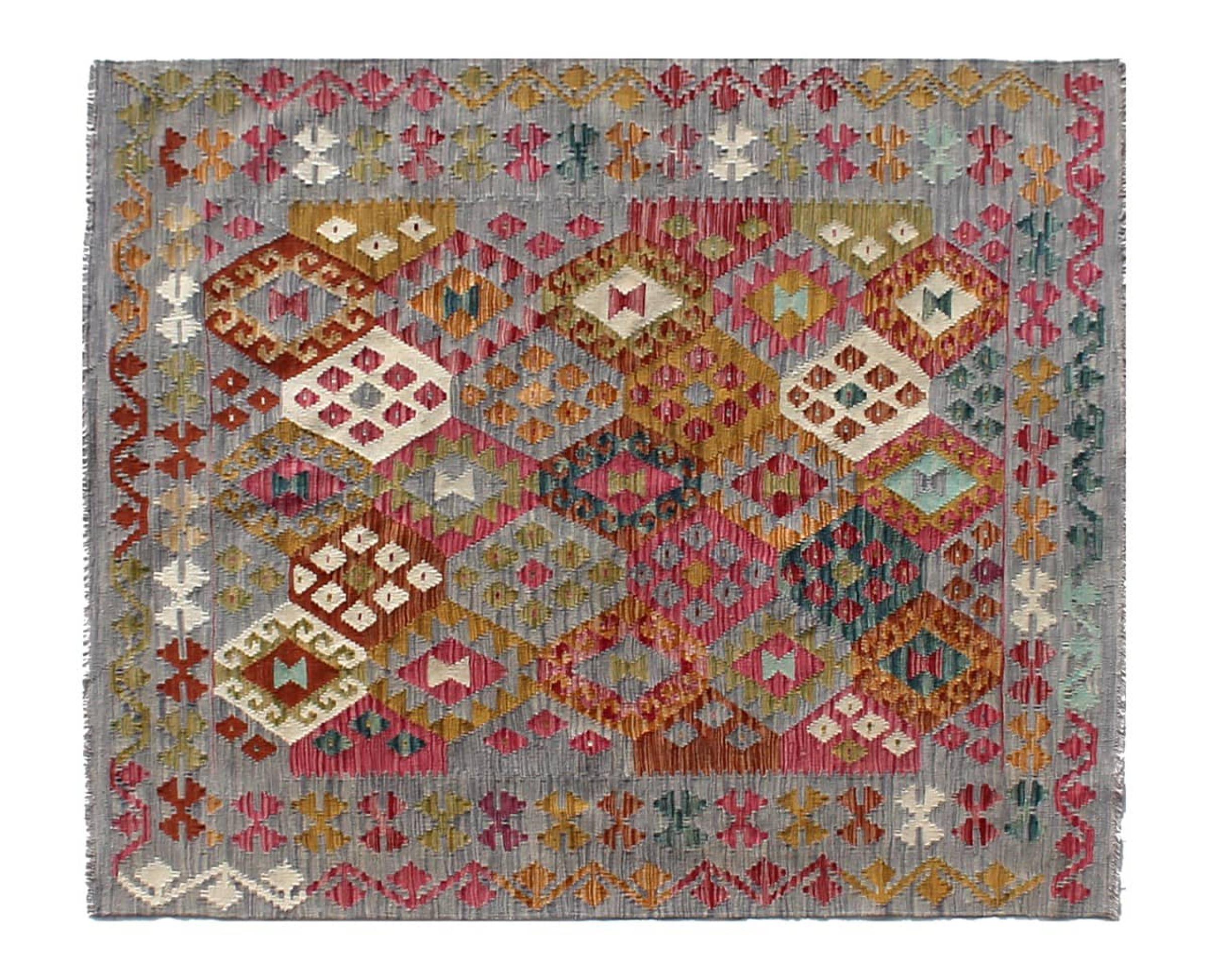Questi tappeti kilim mostrano una differenza decisiva rispetto ai tappeti annodati a mano - sono tessuti a mano. Non hanno quindi un pelo alto di lana e sono spesso più piatti e ruvidi dei tappeti di lana annodati. La loro realizzazione è meno elaborata e quindi di solito sono molto più economici. Come vantaggio, i tappeti kilim sono anche molto più leggeri e possono essere stesi sia davanti che dietro. I kilim tessuti a mano provengono dall'ex Persia e ora sono spesso prodotti anche in Afghanistan. Hanno dei disegni piuttosto semplici e semplici, che sono dovuti alla loro tecnica di tessitura.
