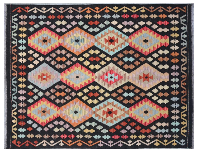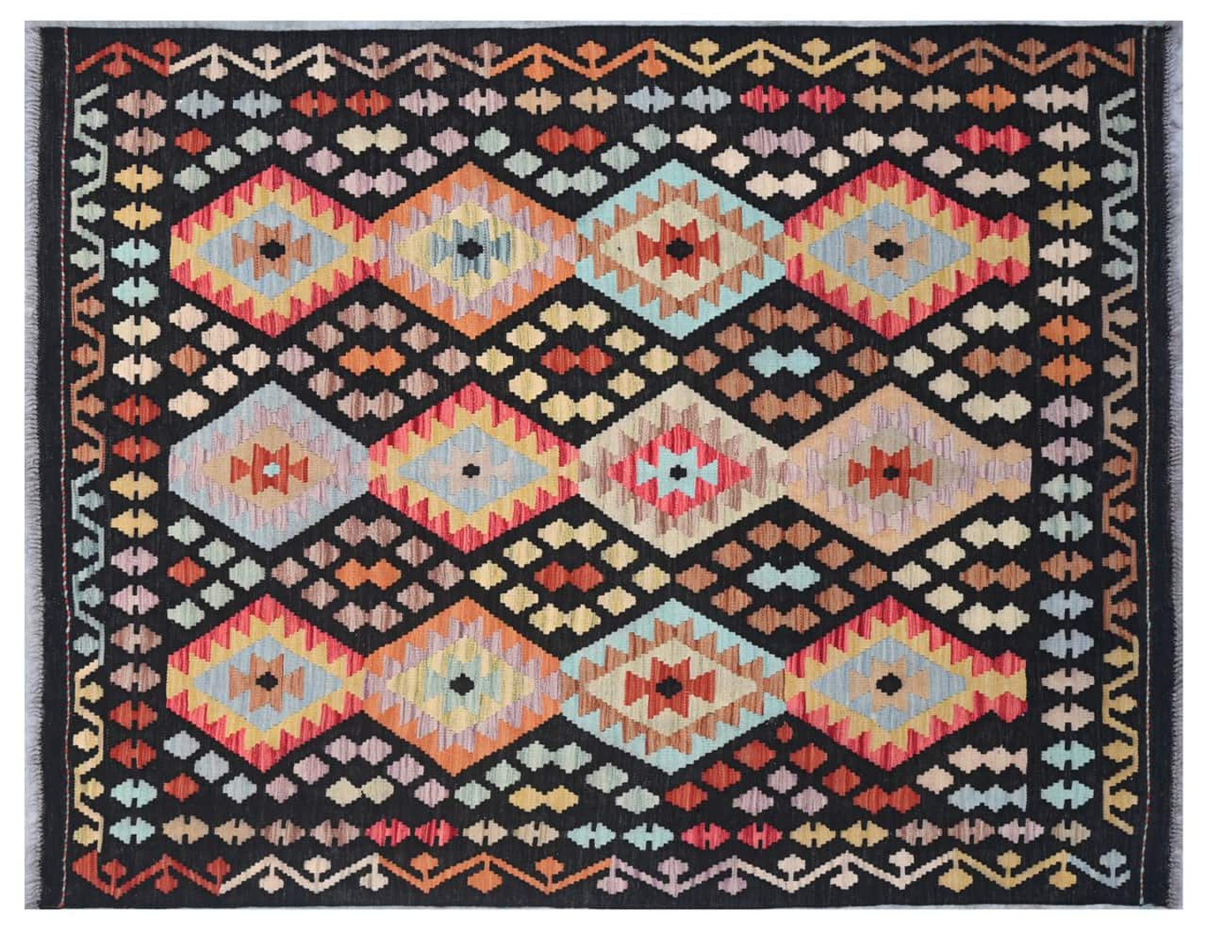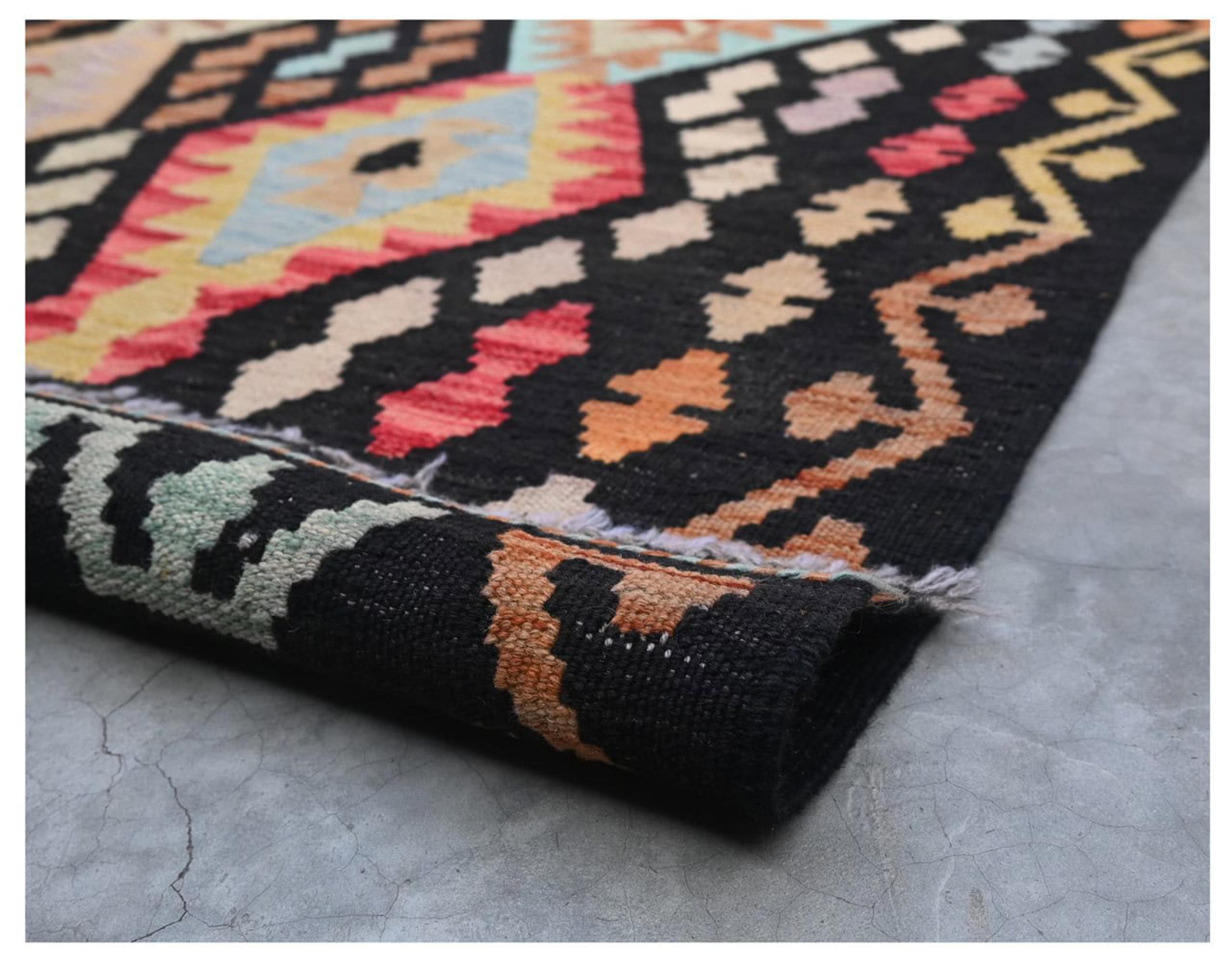 Questo kilim - afghano tessuto a mano è bello sia per i suoi colori e sia per il modello tipico. È stato tessuto a mano in Afghanistan con il 100% di lana. È anche robusto e durevole. Un vero e proprio profitto per voi e per la vostra casa.