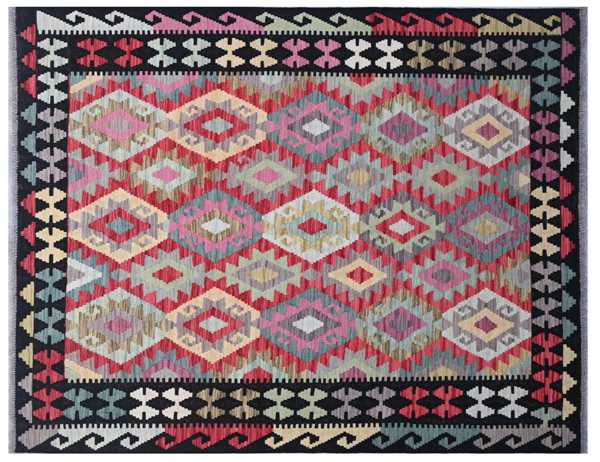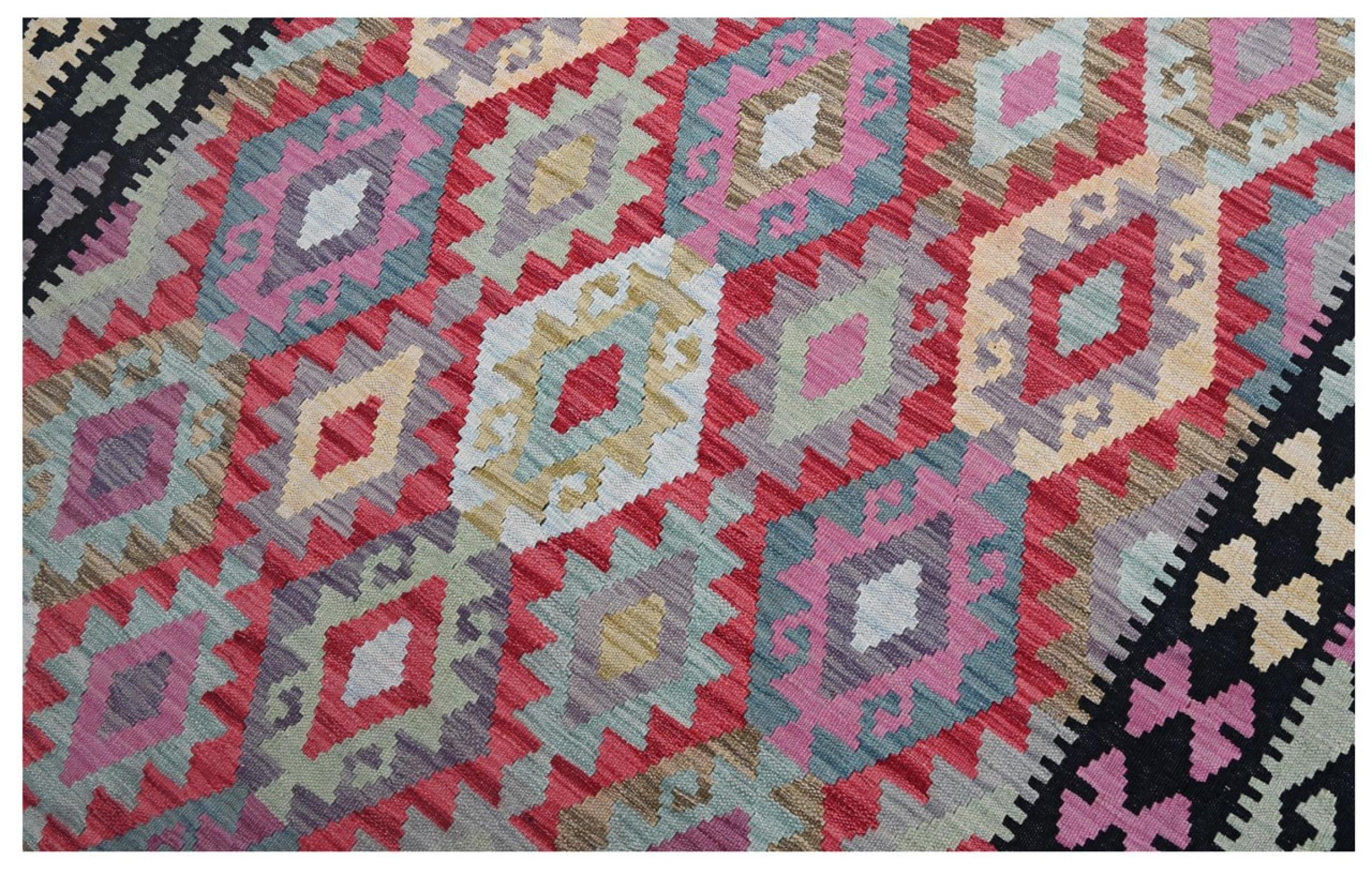 Questo kilim - afghano tessuto a mano è bello sia per i suoi colori e sia per il modello tipico. È stato tessuto a mano in Afghanistan con il 100% di lana. È anche robusto e durevole. Un vero e proprio profitto per voi e per la vostra casa.
