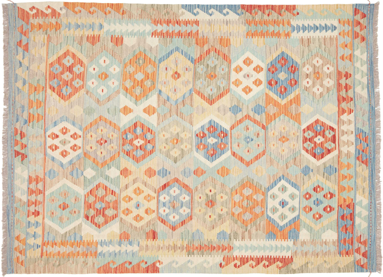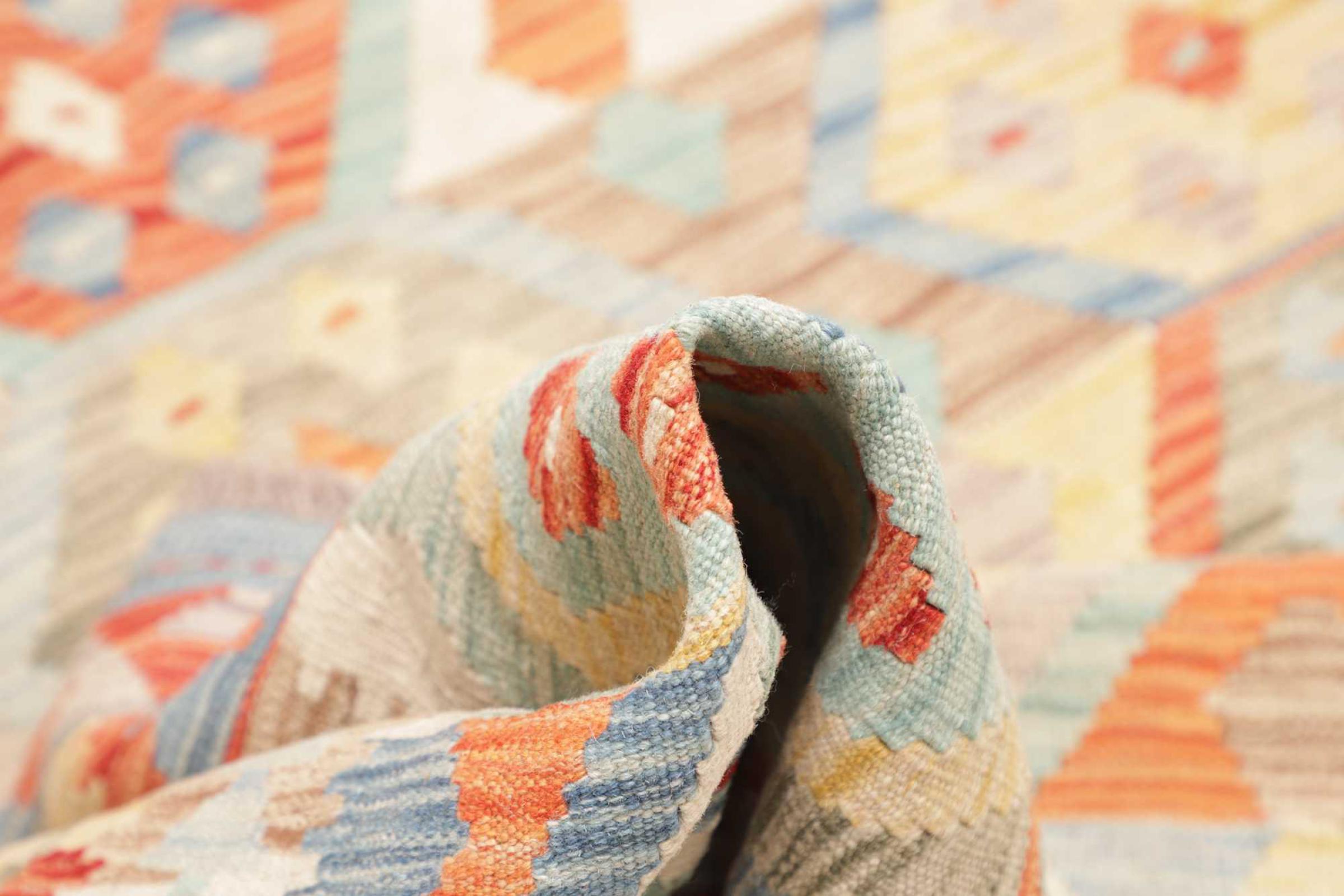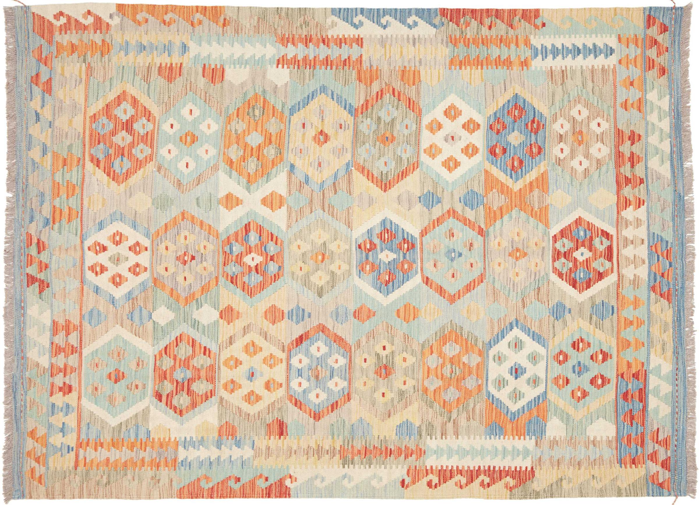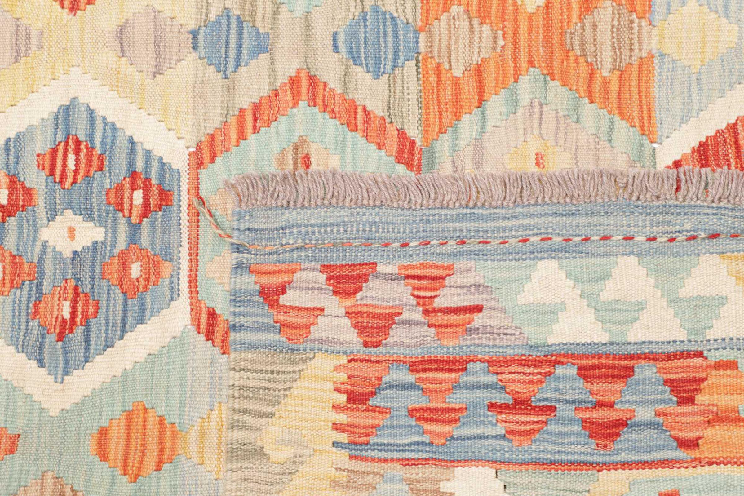 Questo kilim - afghano tessuto a mano è bello sia per i suoi colori e sia per il modello tipico. È stato tessuto a mano in Afghanistan con il 100% di lana. È anche robusto e durevole. Un vero e proprio profitto per voi e per la vostra casa.