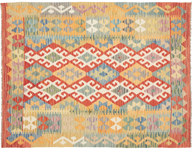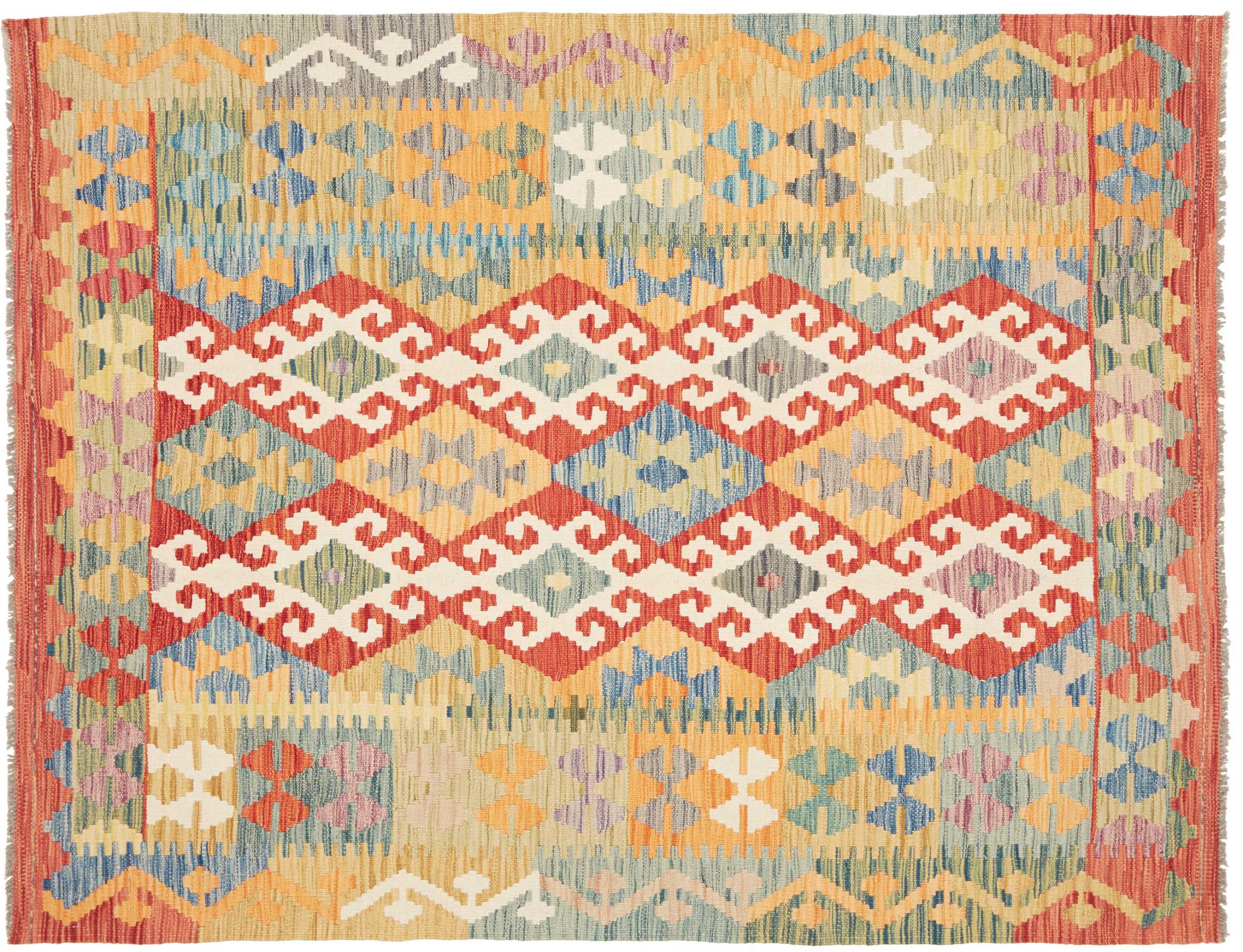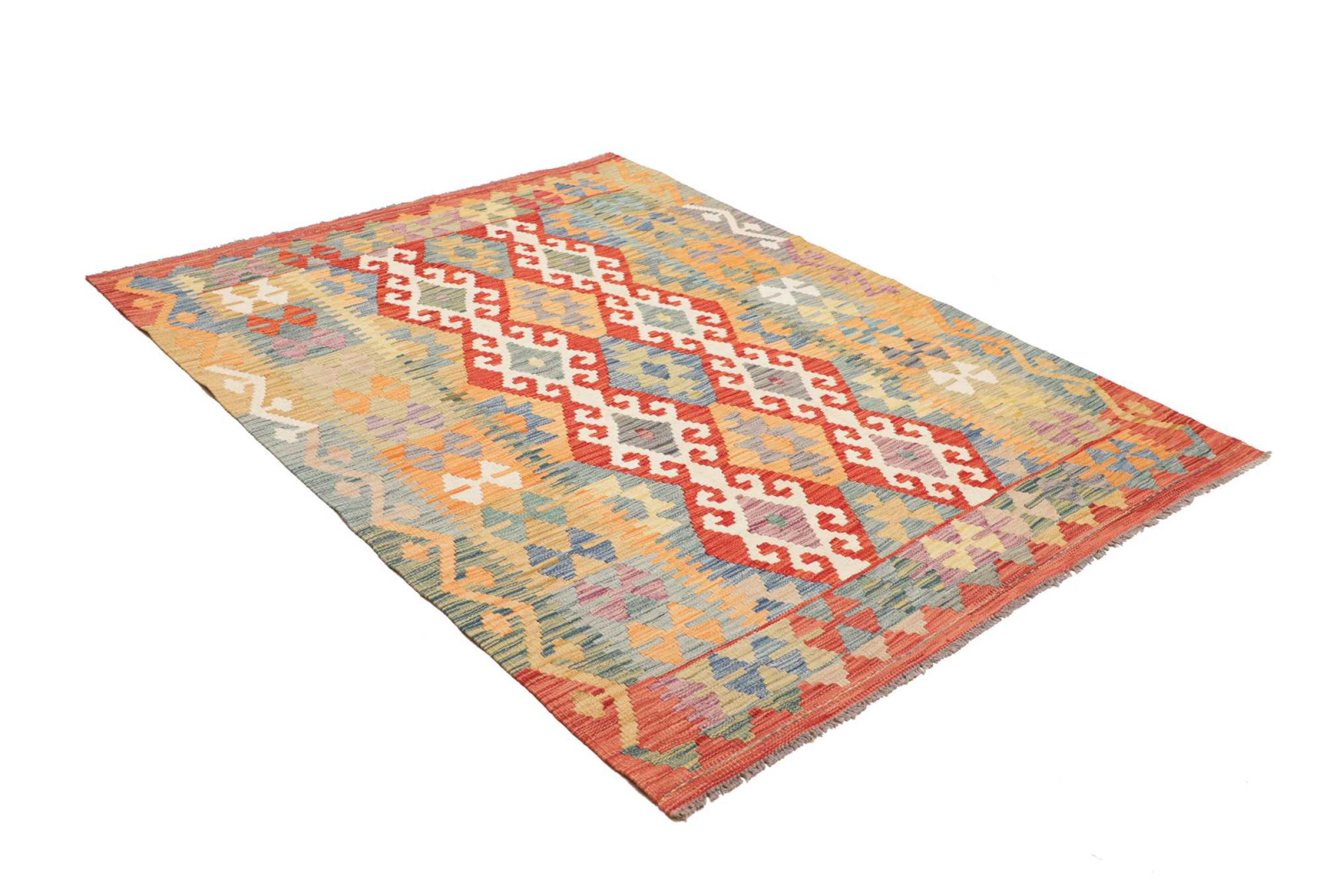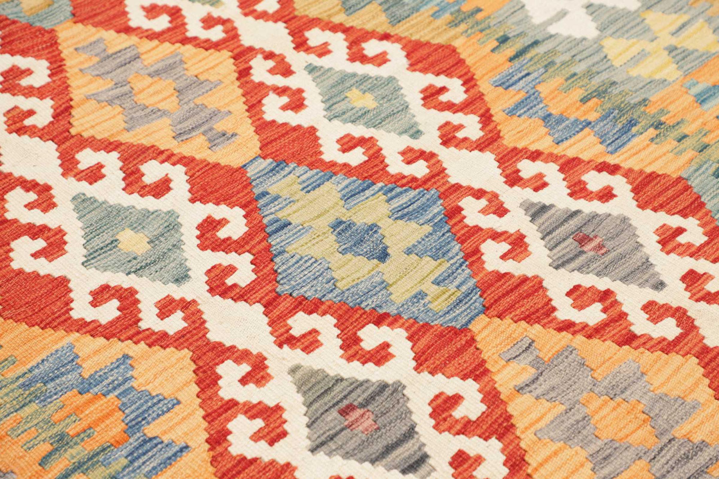 Questo kilim - afghano tessuto a mano è bello sia per i suoi colori e sia per il modello tipico. È stato tessuto a mano in Afghanistan con il 100% di lana. È anche robusto e durevole. Un vero e proprio profitto per voi e per la vostra casa.