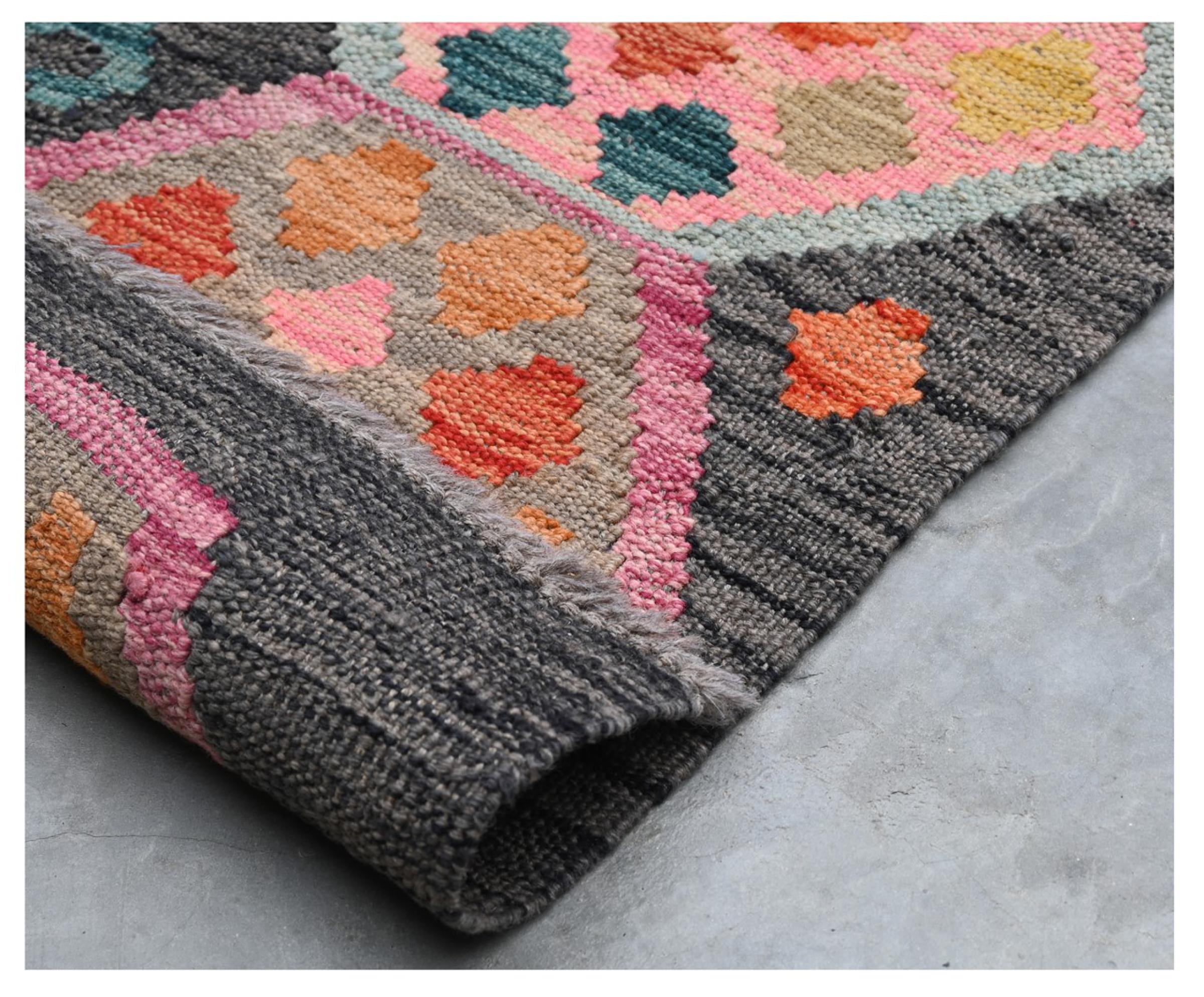 Questi tappeti kilim mostrano una differenza decisiva rispetto ai tappeti annodati a mano - sono tessuti a mano. Non hanno quindi un pelo alto di lana e sono spesso più piatti e ruvidi dei tappeti di lana annodati. La loro realizzazione è meno elaborata e quindi di solito sono molto più economici. Come vantaggio, i tappeti kilim sono anche molto più leggeri e possono essere stesi sia davanti che dietro. I kilim tessuti a mano provengono dall'ex Persia e ora sono spesso prodotti anche in Afghanistan. Hanno dei disegni piuttosto semplici e semplici, che sono dovuti alla loro tecnica di tessitura.
