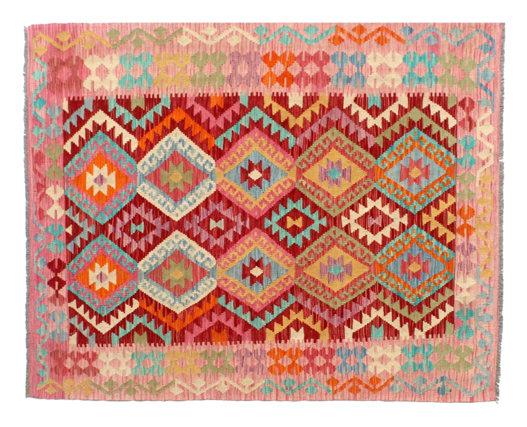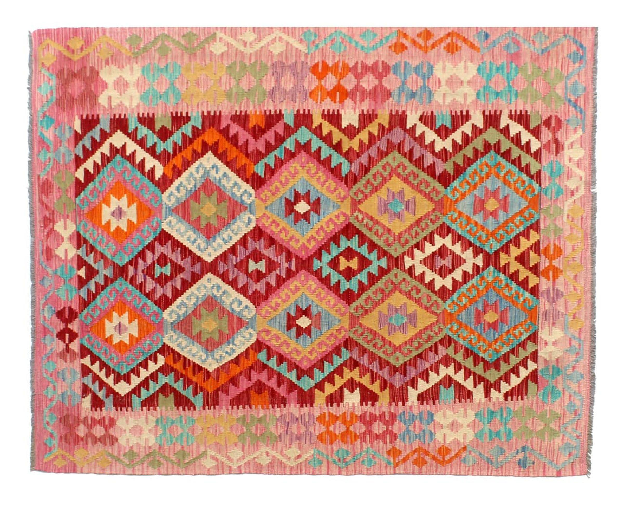 Questo kilim - afghano tessuto a mano è bello sia per i suoi colori e sia per il modello tipico. È stato tessuto a mano in Afghanistan con il 100% di lana. È anche robusto e durevole. Un vero e proprio profitto per voi e per la vostra casa.