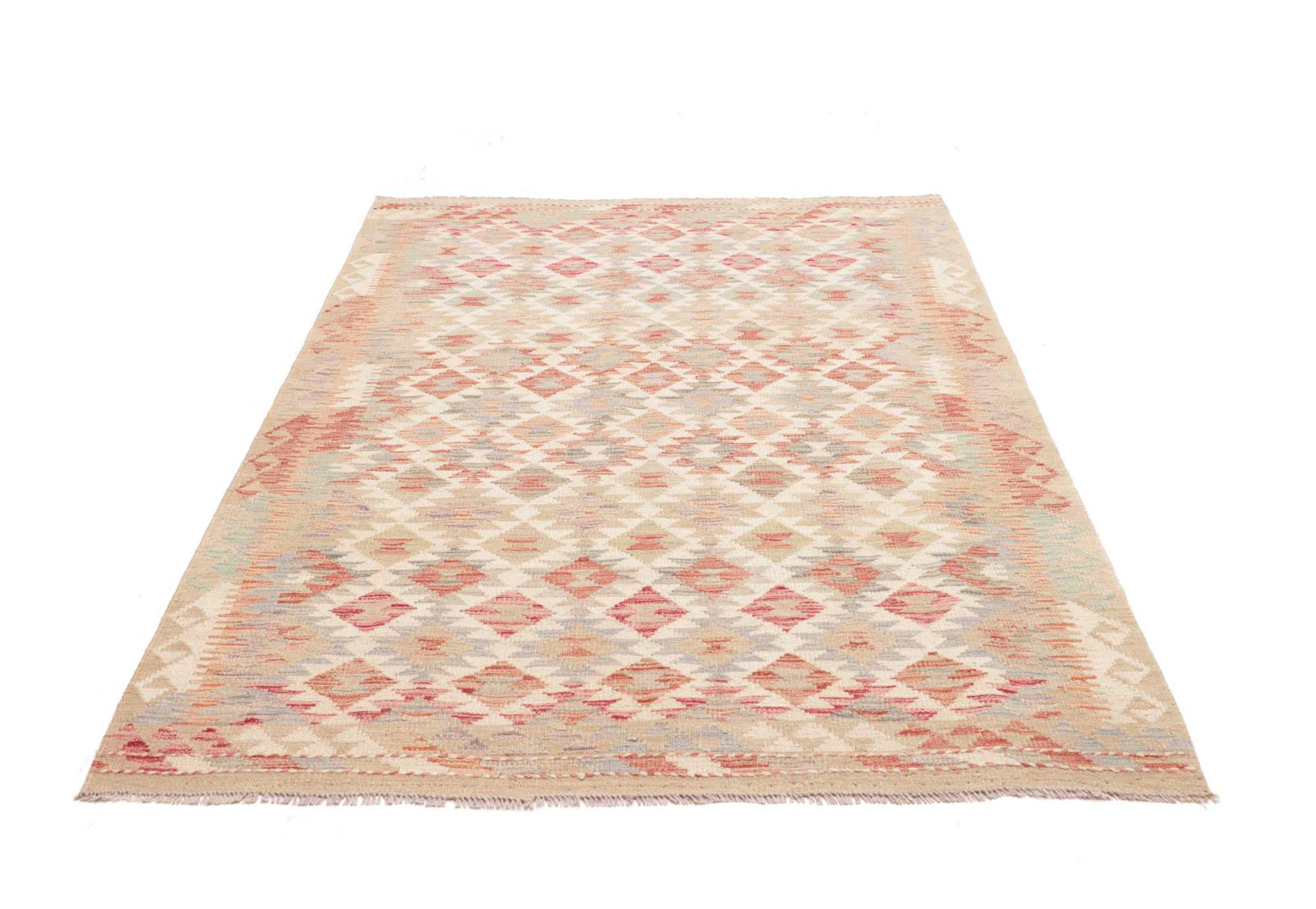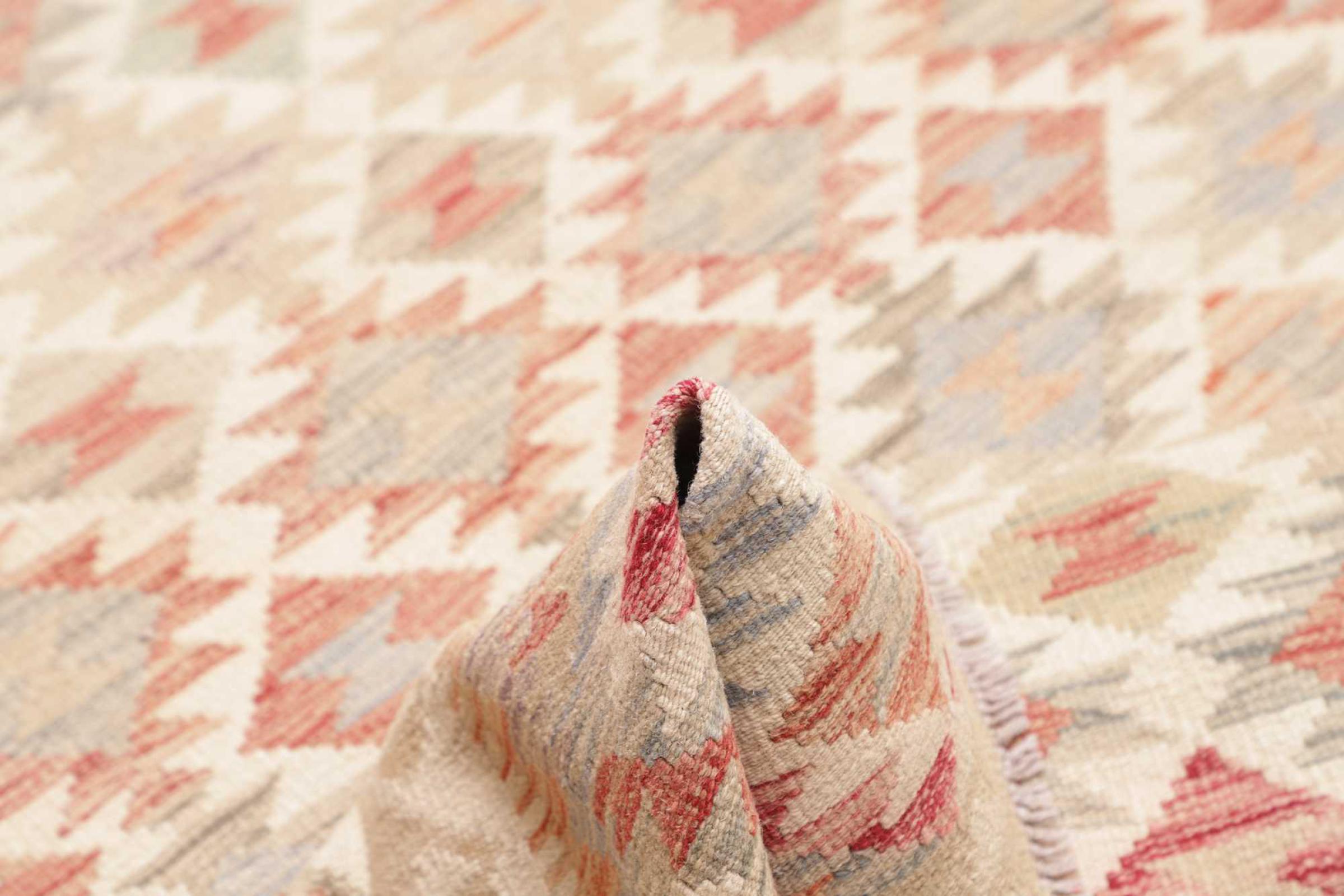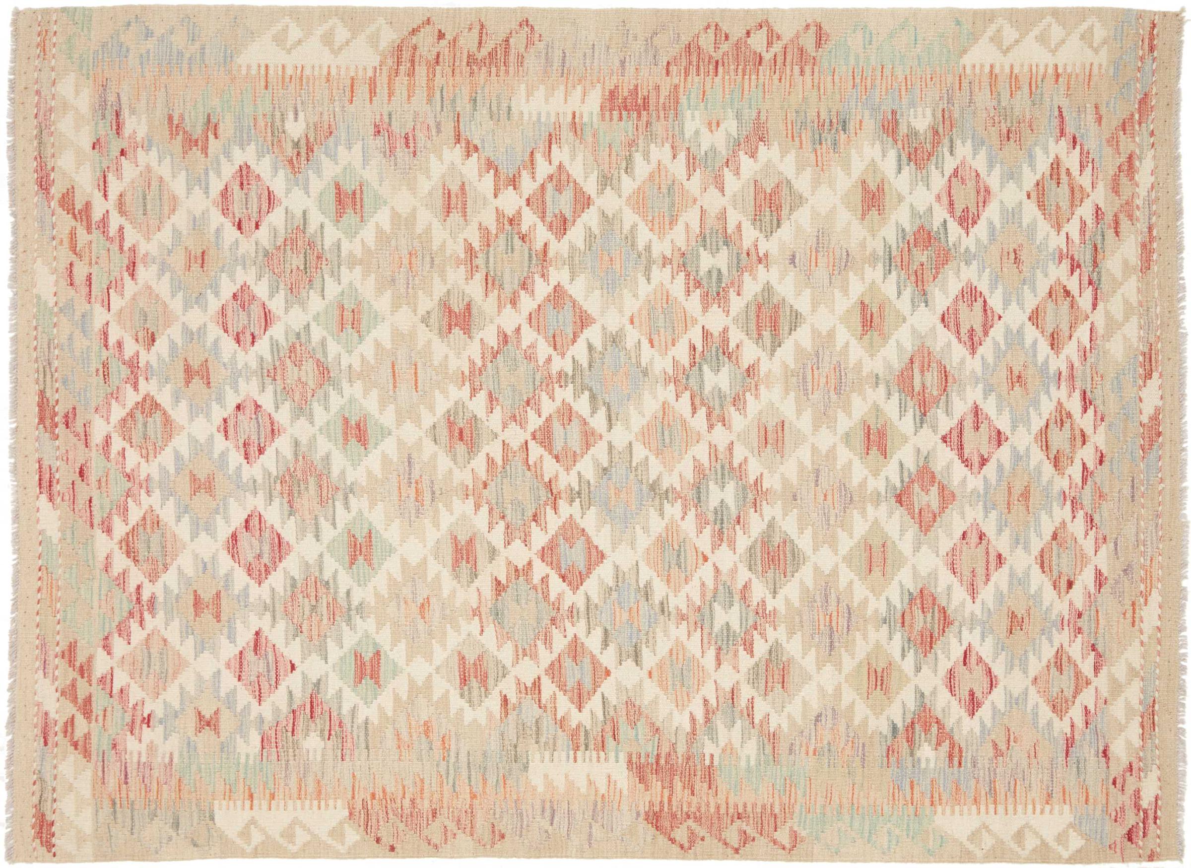 Questo kilim - afghano tessuto a mano è bello sia per i suoi colori e sia per il modello tipico. È stato tessuto a mano in Afghanistan con il 100% di lana. È anche robusto e durevole. Un vero e proprio profitto per voi e per la vostra casa.
