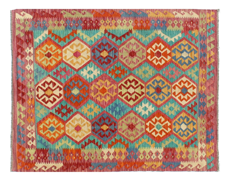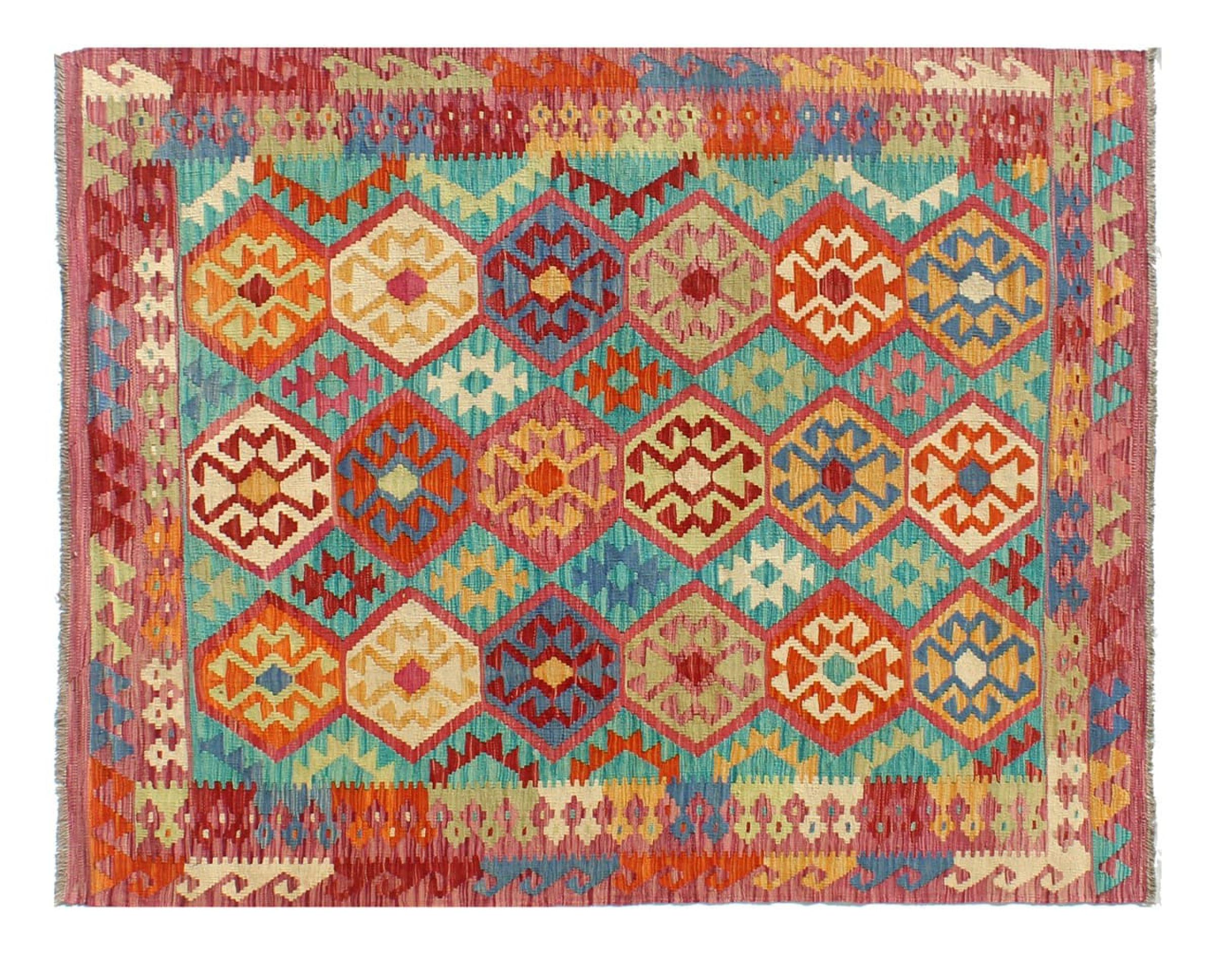 Questo kilim - afghano tessuto a mano è bello sia per i suoi colori e sia per il modello tipico. È stato tessuto a mano in Afghanistan con il 100% di lana. È anche robusto e durevole. Un vero e proprio profitto per voi e per la vostra casa.