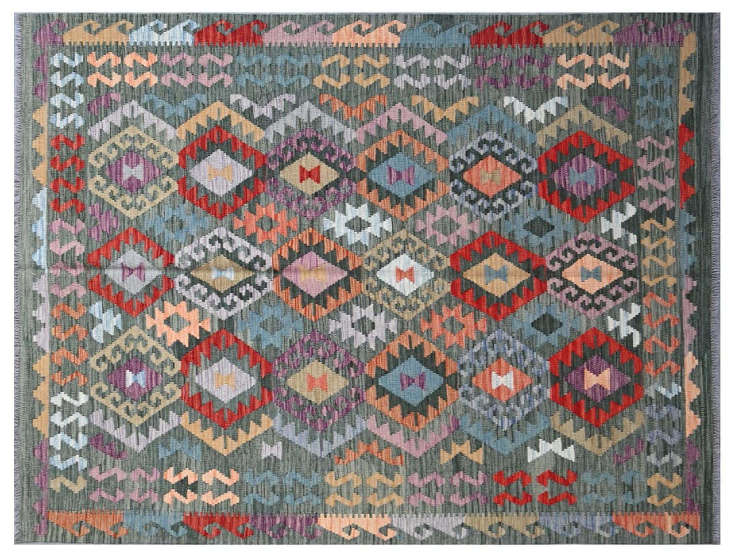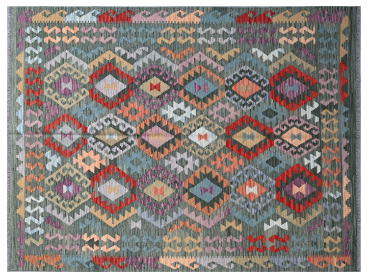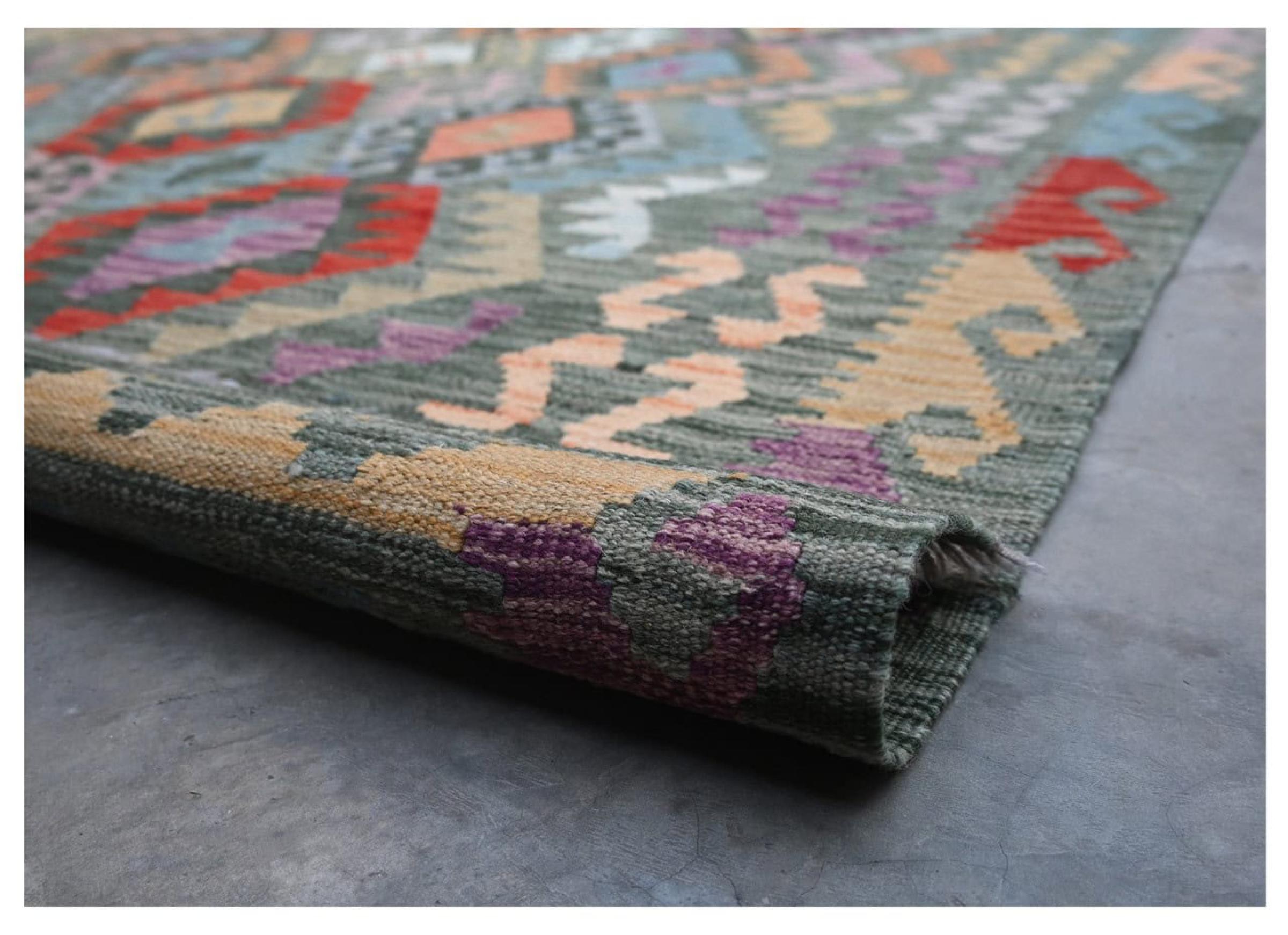 Questo kilim - afghano tessuto a mano è bello sia per i suoi colori e sia per il modello tipico. È stato tessuto a mano in Afghanistan con il 100% di lana. È anche robusto e durevole. Un vero e proprio profitto per voi e per la vostra casa.