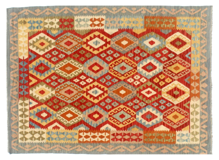Questi tappeti kilim mostrano una differenza decisiva rispetto ai tappeti annodati a mano - sono tessuti a mano. Non hanno quindi un pelo alto di lana e sono spesso più piatti e ruvidi dei tappeti di lana annodati. La loro realizzazione è meno elaborata e quindi di solito sono molto più economici. Come vantaggio, i tappeti kilim sono anche molto più leggeri e possono essere stesi sia davanti che dietro. I kilim tessuti a mano provengono dall'ex Persia e ora sono spesso prodotti anche in Afghanistan. Hanno dei disegni piuttosto semplici e semplici, che sono dovuti alla loro tecnica di tessitura.
