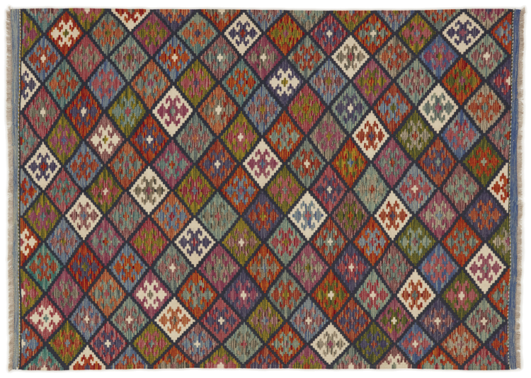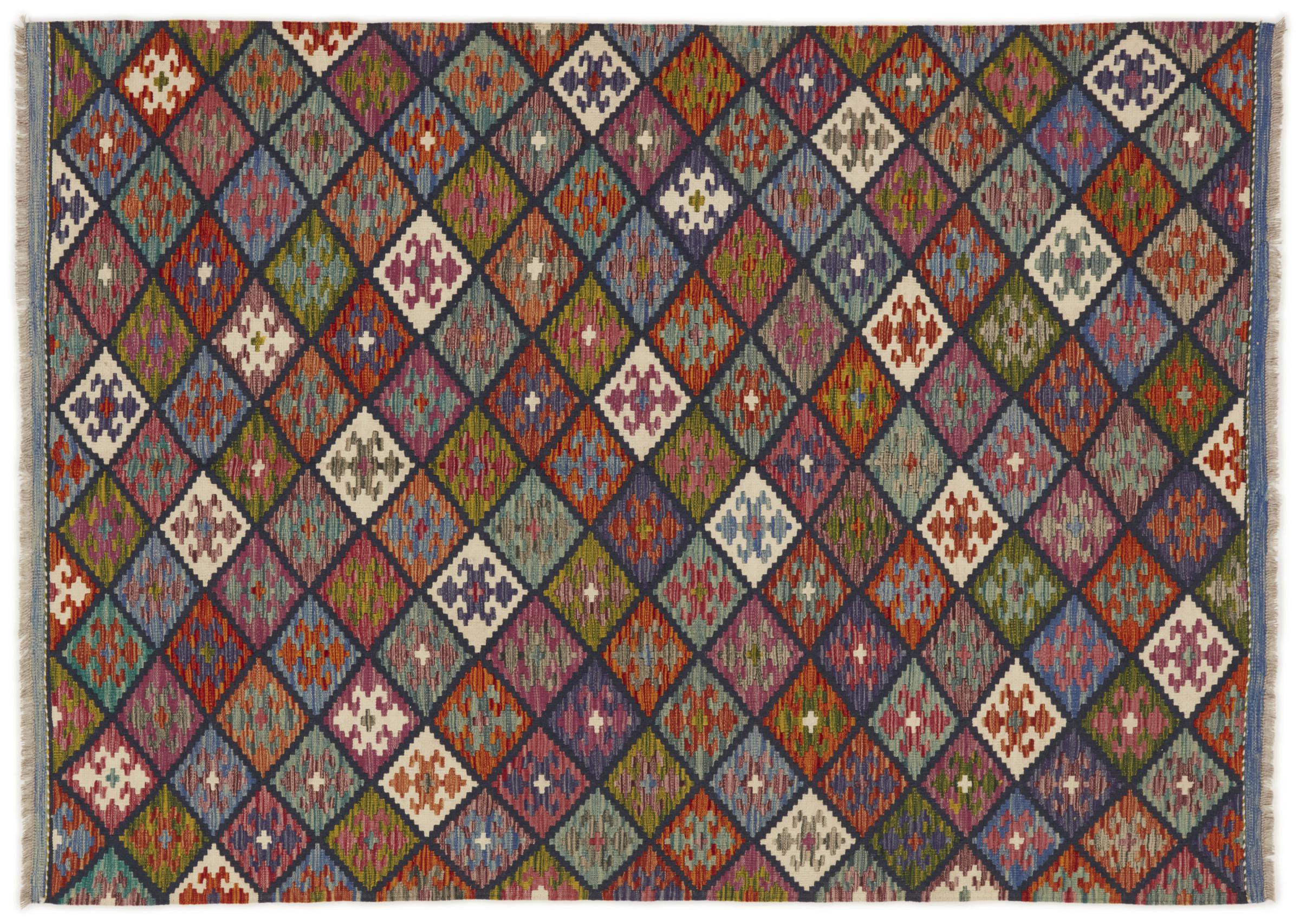 Questo kilim - afghano tessuto a mano è bello sia per i suoi colori e sia per il modello tipico. È stato tessuto a mano in Afghanistan con il 100% di lana. È anche robusto e durevole. Un vero e proprio profitto per voi e per la vostra casa.