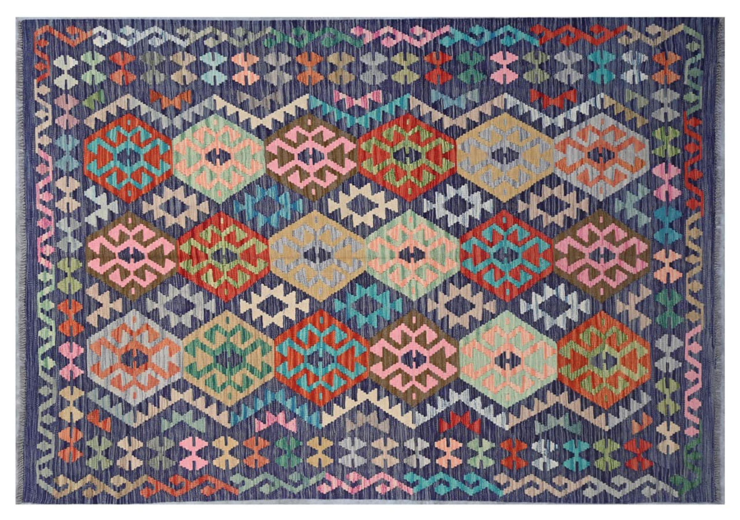 Questo kilim - afghano tessuto a mano è bello sia per i suoi colori e sia per il modello tipico. È stato tessuto a mano in Afghanistan con il 100% di lana. È anche robusto e durevole. Un vero e proprio profitto per voi e per la vostra casa.