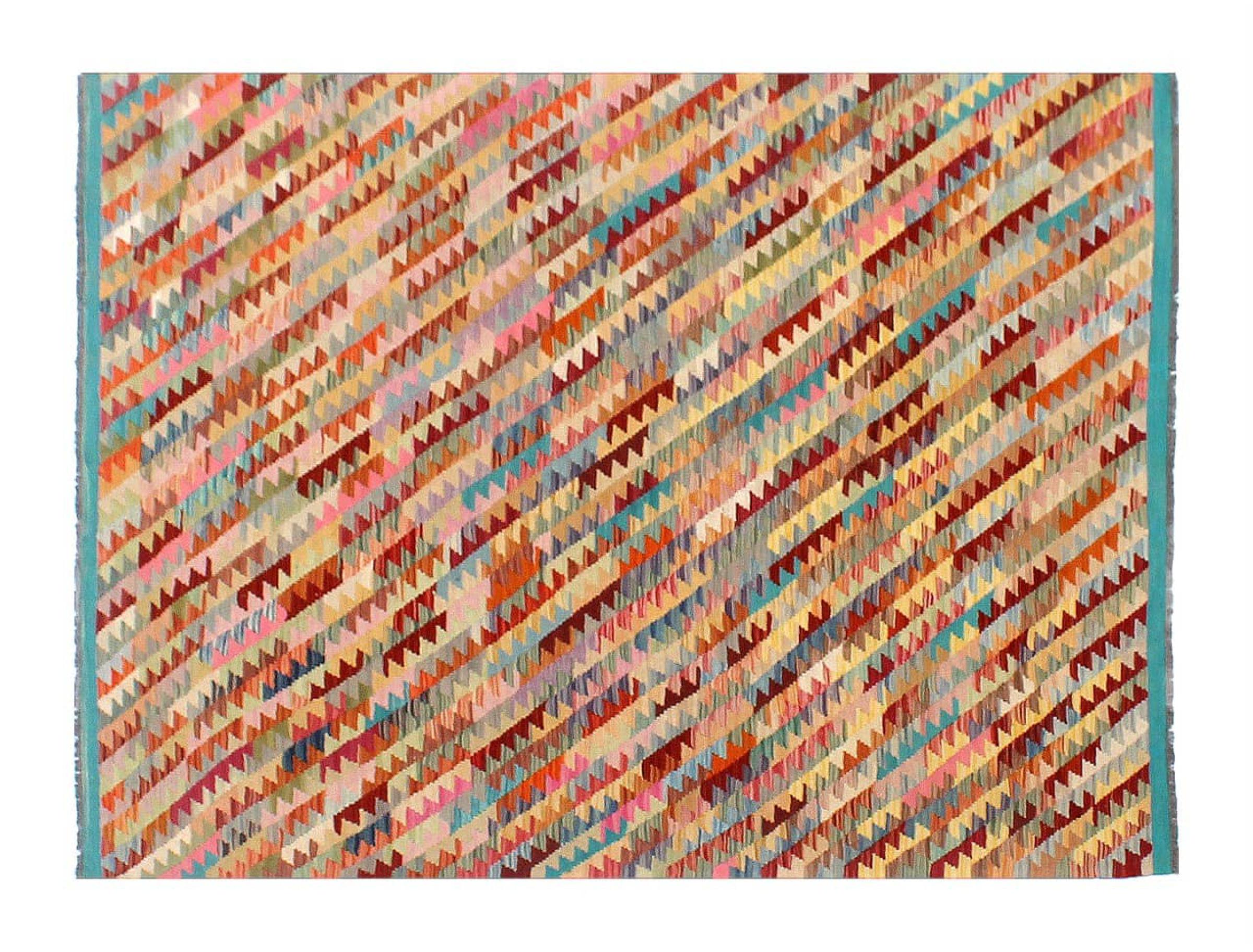 Questo kilim - afghano tessuto a mano è bello sia per i suoi colori e sia per il modello tipico. È stato tessuto a mano in Afghanistan con il 100% di lana. È anche robusto e durevole. Un vero e proprio profitto per voi e per la vostra casa.