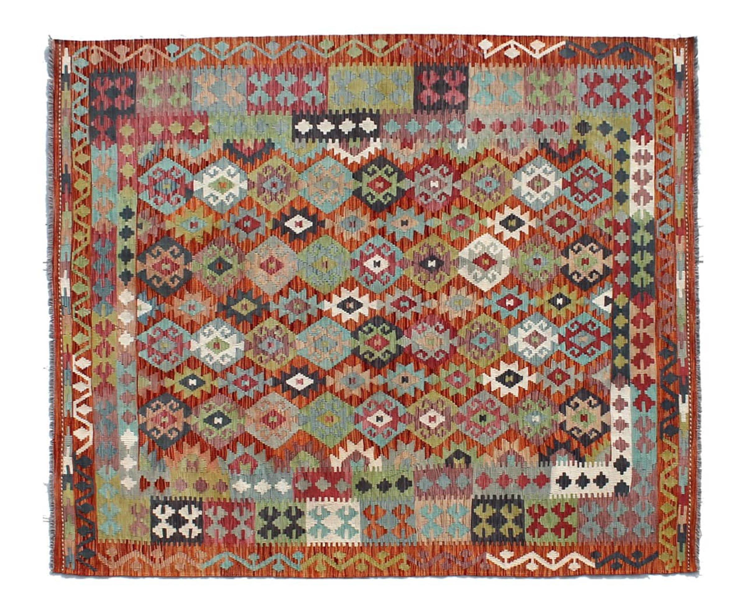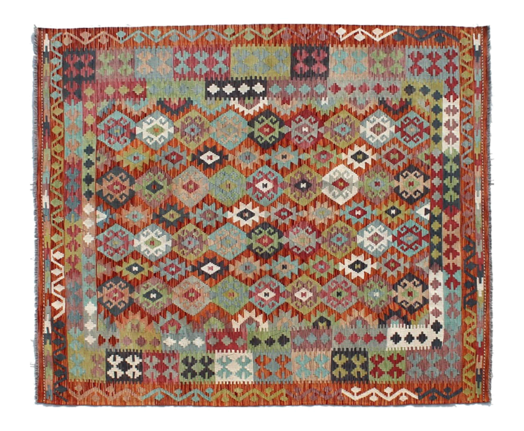 Questi tappeti kilim mostrano una differenza decisiva rispetto ai tappeti annodati a mano - sono tessuti a mano. Non hanno quindi un pelo alto di lana e sono spesso più piatti e ruvidi dei tappeti di lana annodati. La loro realizzazione è meno elaborata e quindi di solito sono molto più economici. Come vantaggio, i tappeti kilim sono anche molto più leggeri e possono essere stesi sia davanti che dietro. I kilim tessuti a mano provengono dall'ex Persia e ora sono spesso prodotti anche in Afghanistan. Hanno dei disegni piuttosto semplici e semplici, che sono dovuti alla loro tecnica di tessitura.