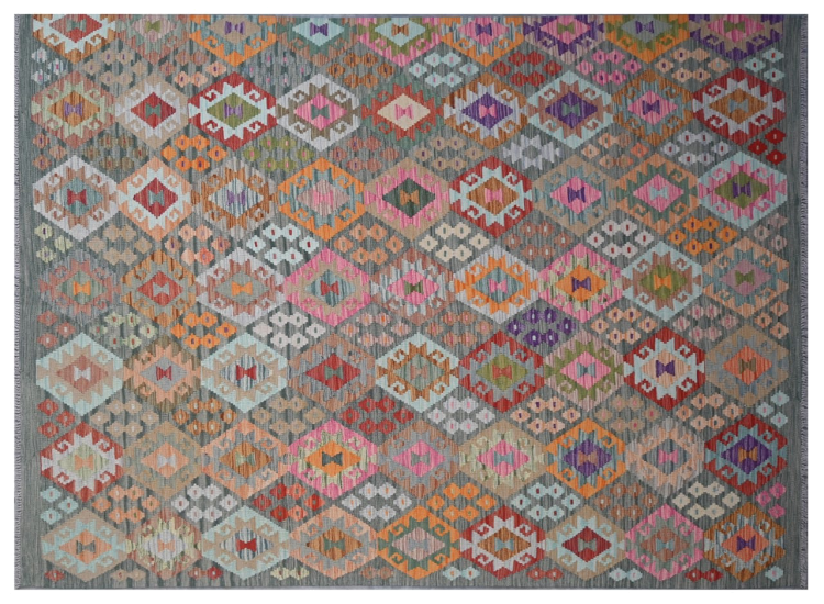 Questo kilim - afghano tessuto a mano è bello sia per i suoi colori e sia per il modello tipico. È stato tessuto a mano in Afghanistan con il 100% di lana. È anche robusto e durevole. Un vero e proprio profitto per voi e per la vostra casa.