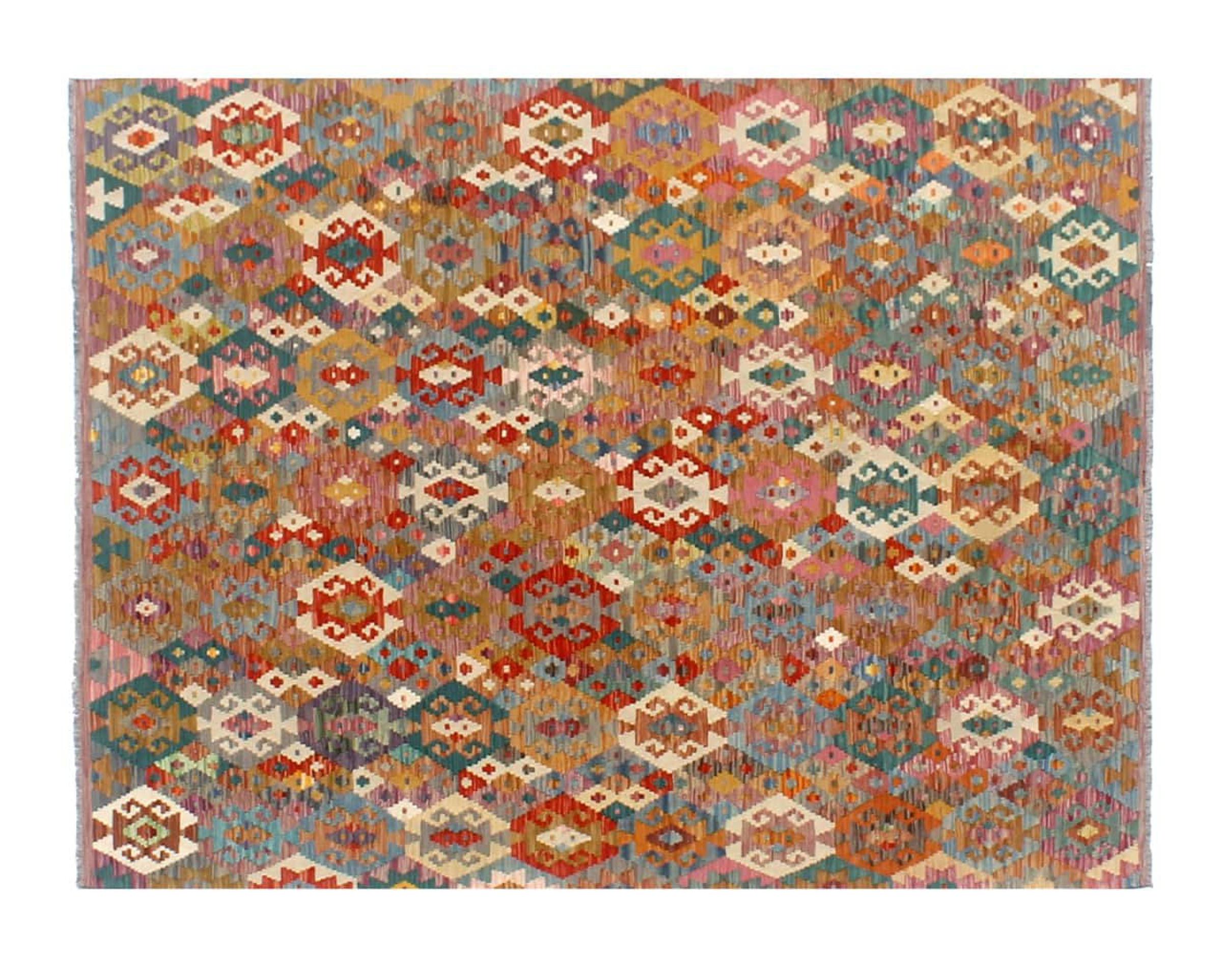 Questi tappeti kilim mostrano una differenza decisiva rispetto ai tappeti annodati a mano - sono tessuti a mano. Non hanno quindi un pelo alto di lana e sono spesso più piatti e ruvidi dei tappeti di lana annodati. La loro realizzazione è meno elaborata e quindi di solito sono molto più economici. Come vantaggio, i tappeti kilim sono anche molto più leggeri e possono essere stesi sia davanti che dietro. I kilim tessuti a mano provengono dall'ex Persia e ora sono spesso prodotti anche in Afghanistan. Hanno dei disegni piuttosto semplici e semplici, che sono dovuti alla loro tecnica di tessitura.