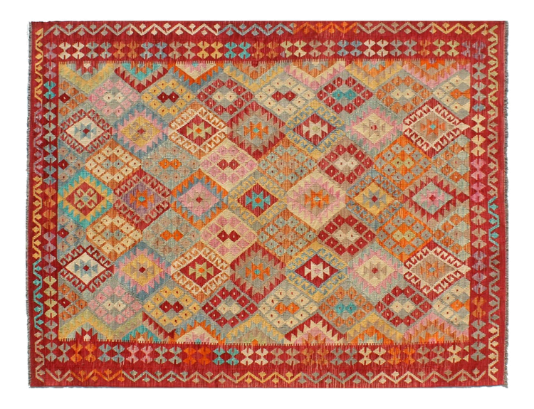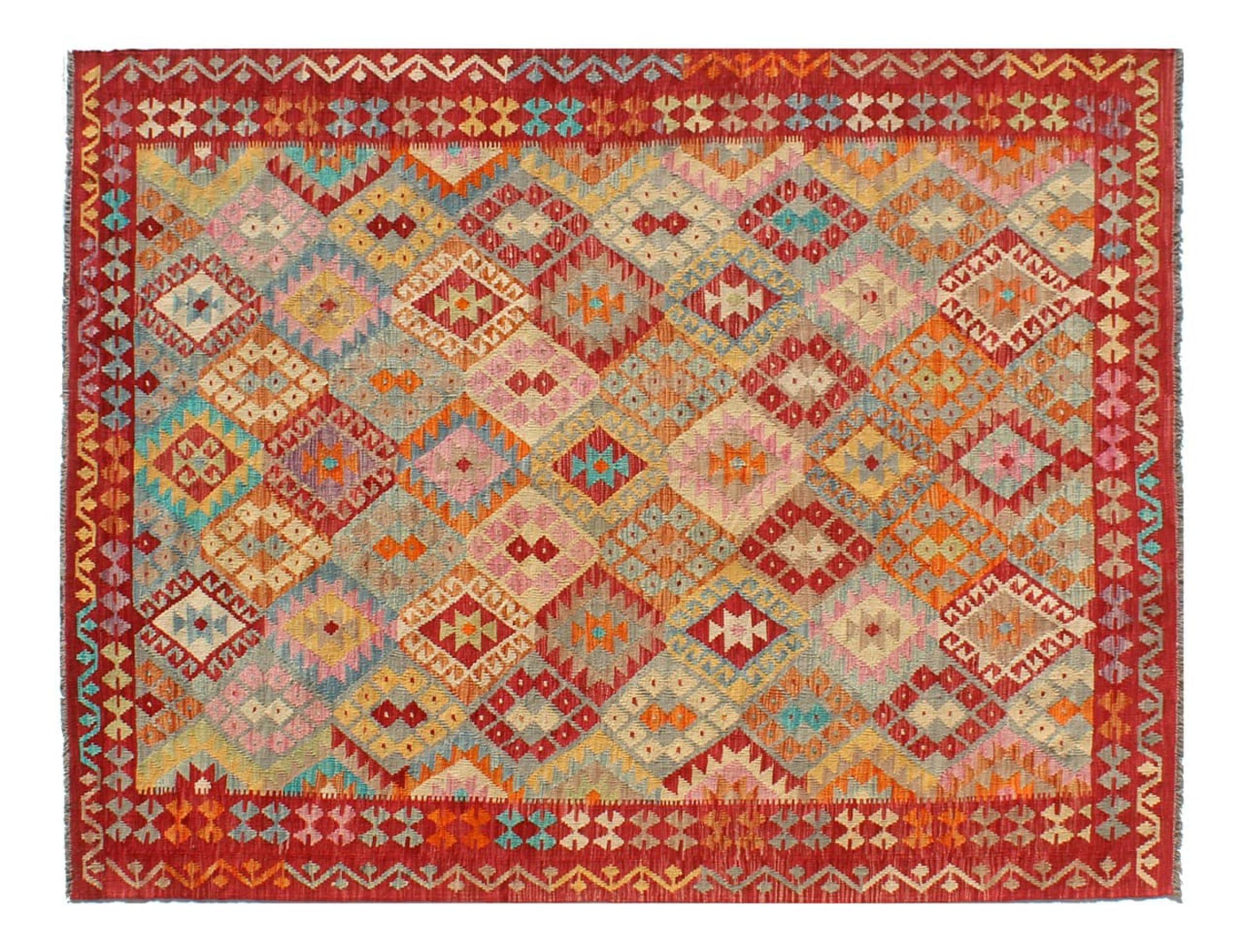 Questo kilim - afghano tessuto a mano è bello sia per i suoi colori e sia per il modello tipico. È stato tessuto a mano in Afghanistan con il 100% di lana. È anche robusto e durevole. Un vero e proprio profitto per voi e per la vostra casa.