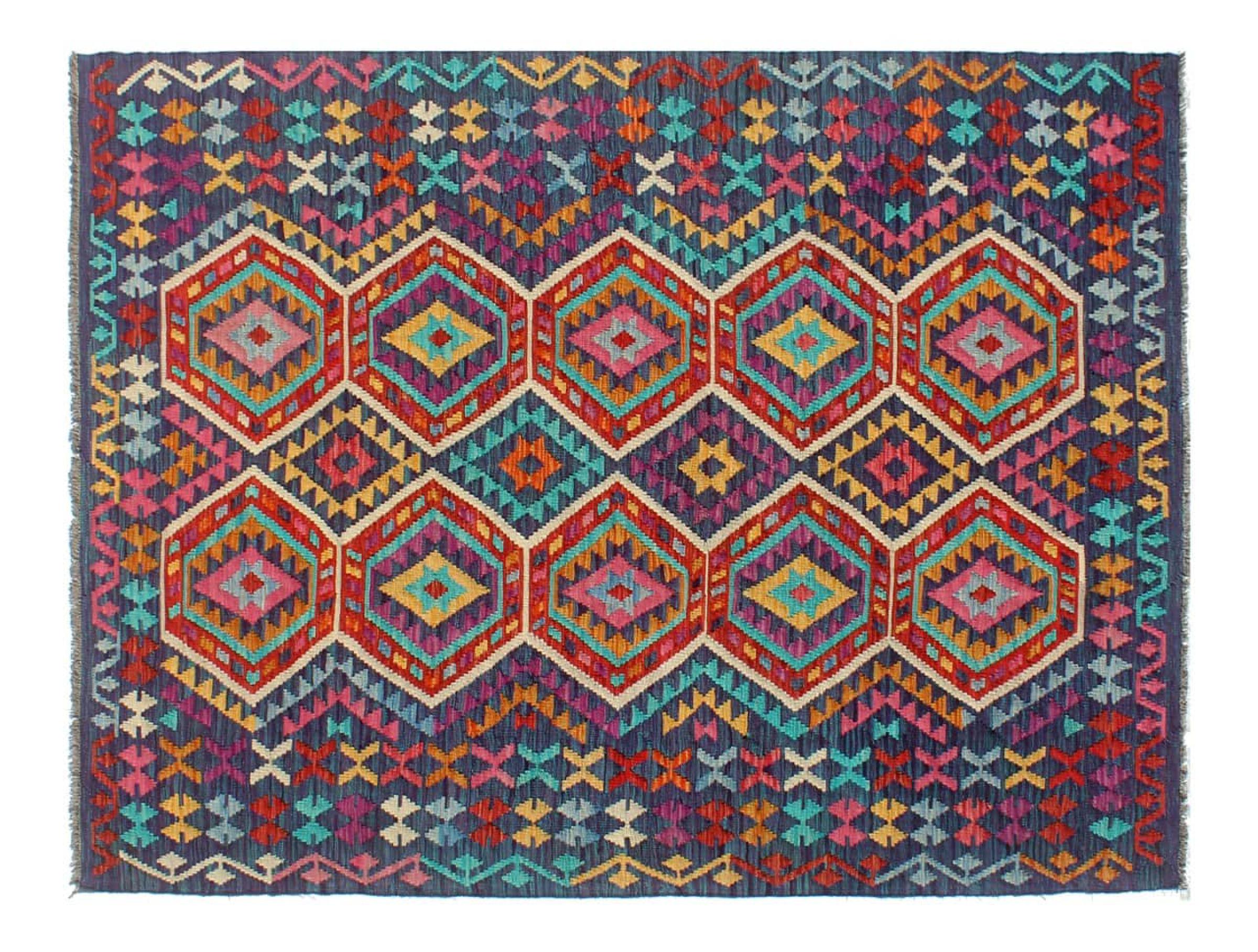 Questo kilim - afghano tessuto a mano è bello sia per i suoi colori e sia per il modello tipico. È stato tessuto a mano in Afghanistan con il 100% di lana. È anche robusto e durevole. Un vero e proprio profitto per voi e per la vostra casa.