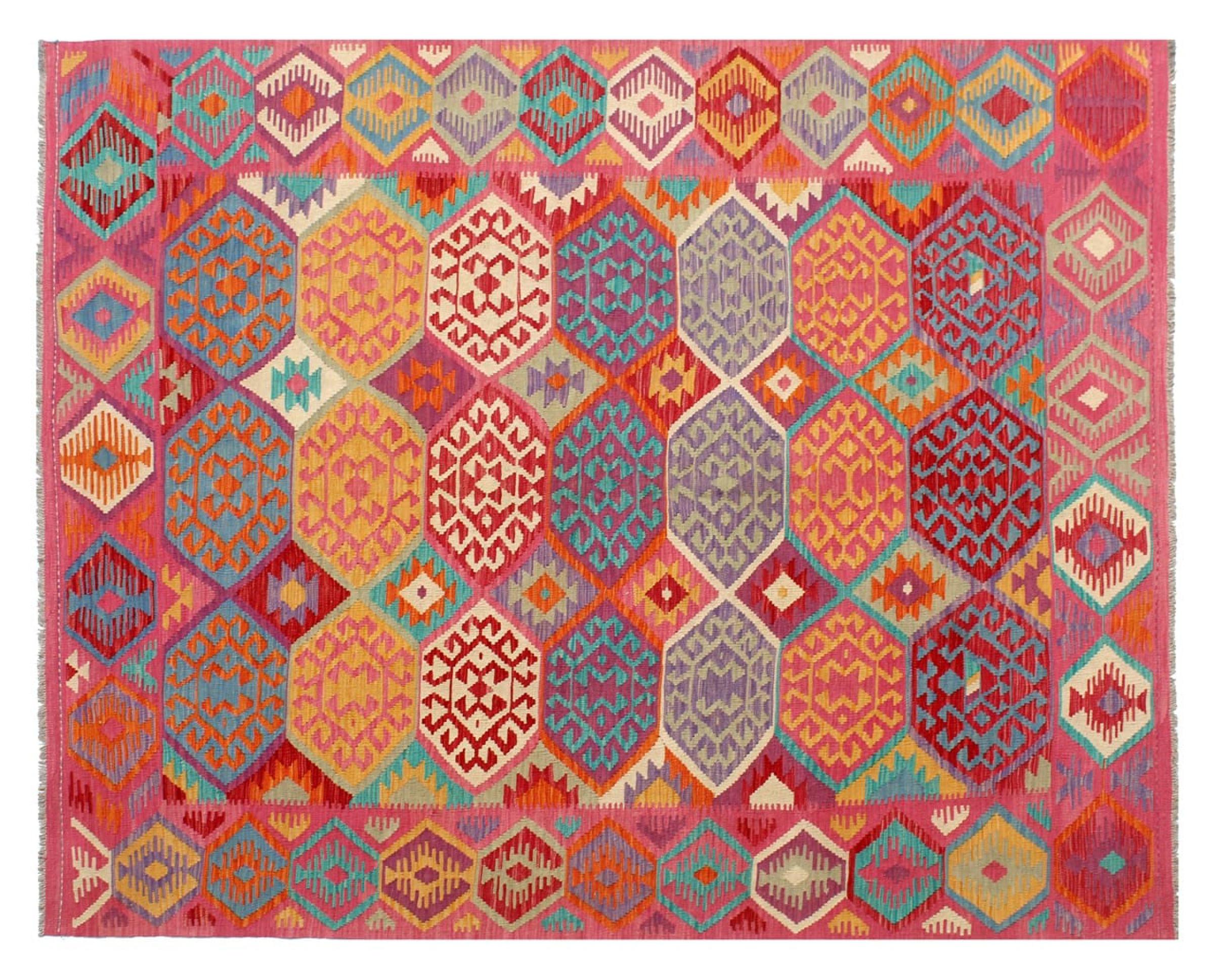 Questo kilim - afghano tessuto a mano è bello sia per i suoi colori e sia per il modello tipico. È stato tessuto a mano in Afghanistan con il 100% di lana. È anche robusto e durevole. Un vero e proprio profitto per voi e per la vostra casa.