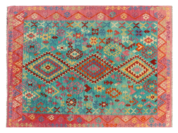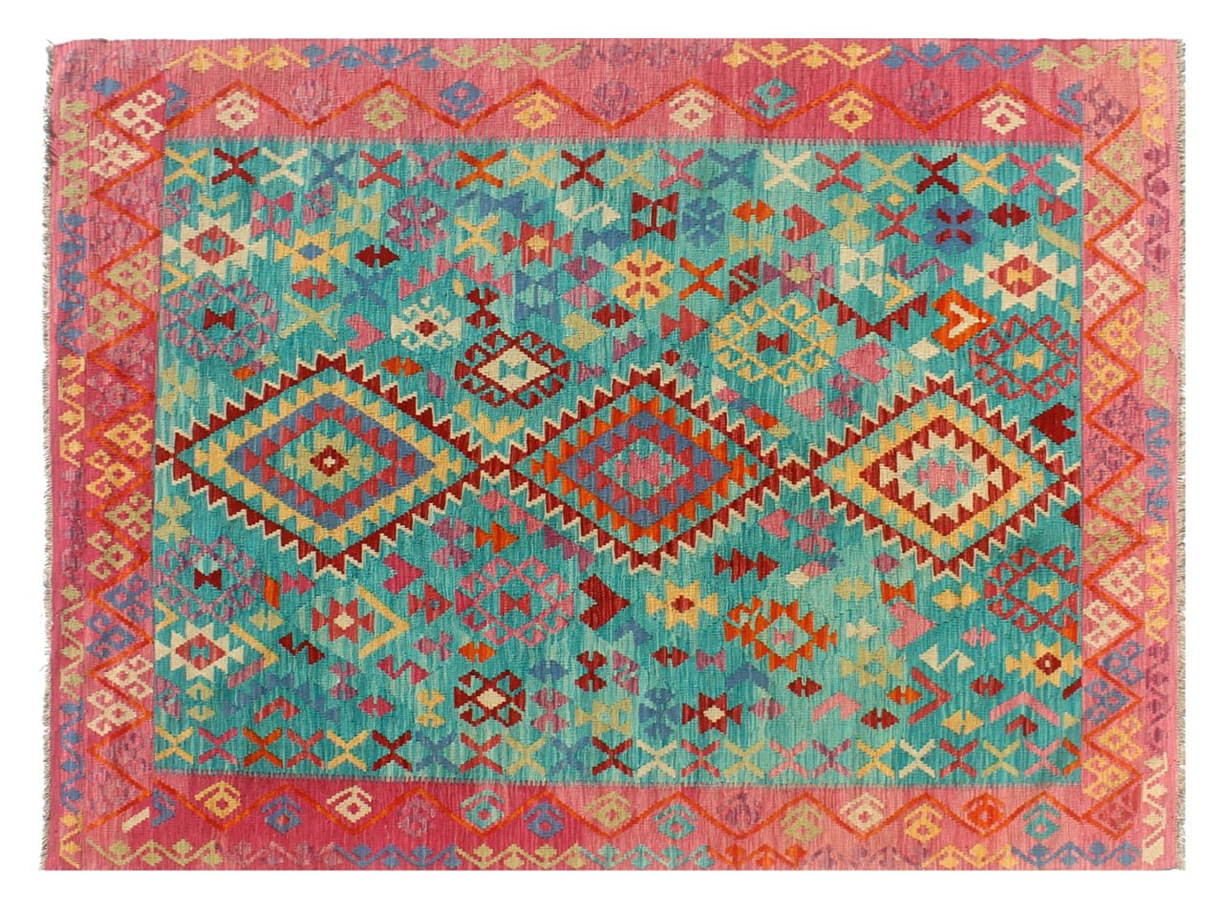 Questo kilim - afghano tessuto a mano è bello sia per i suoi colori e sia per il modello tipico. È stato tessuto a mano in Afghanistan con il 100% di lana. È anche robusto e durevole. Un vero e proprio profitto per voi e per la vostra casa.