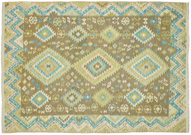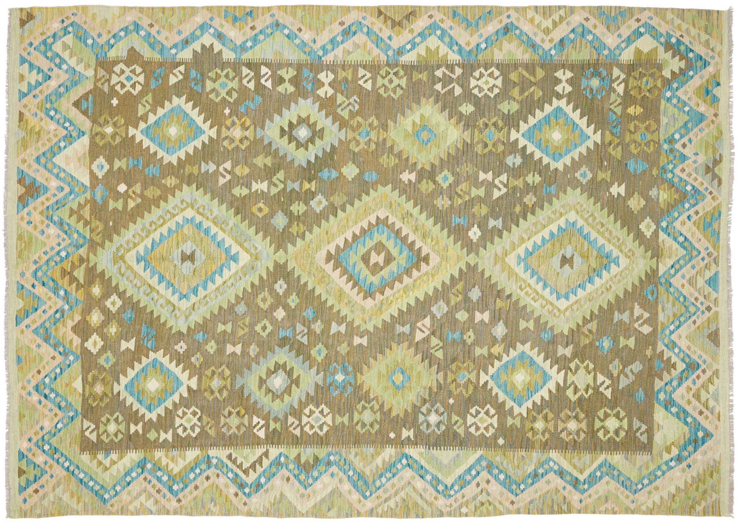 Questo kilim - afghano tessuto a mano è bello sia per i suoi colori e sia per il modello tipico. È stato tessuto a mano in Afghanistan con il 100% di lana. È anche robusto e durevole. Un vero e proprio profitto per voi e per la vostra casa.