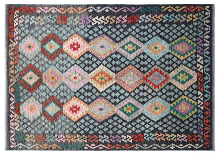 Questo kilim - afghano tessuto a mano è bello sia per i suoi colori e sia per il modello tipico. È stato tessuto a mano in Afghanistan con il 100% di lana. È anche robusto e durevole. Un vero e proprio profitto per voi e per la vostra casa.