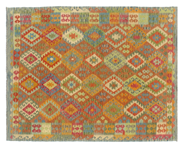 Questo kilim - afghano tessuto a mano è bello sia per i suoi colori e sia per il modello tipico. È stato tessuto a mano in Afghanistan con il 100% di lana. È anche robusto e durevole. Un vero e proprio profitto per voi e per la vostra casa.