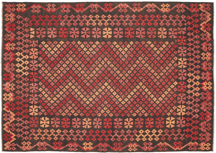 Questi tappeti kilim mostrano una differenza decisiva rispetto ai tappeti annodati a mano - sono tessuti a mano. Non hanno quindi un pelo alto di lana e sono spesso più piatti e ruvidi dei tappeti di lana annodati. La loro realizzazione è meno elaborata e quindi di solito sono molto più economici. Come vantaggio, i tappeti kilim sono anche molto più leggeri e possono essere stesi sia davanti che dietro. I kilim tessuti a mano provengono dall'ex Persia e ora sono spesso prodotti anche in Afghanistan. Hanno dei disegni piuttosto semplici e semplici, che sono dovuti alla loro tecnica di tessitura.