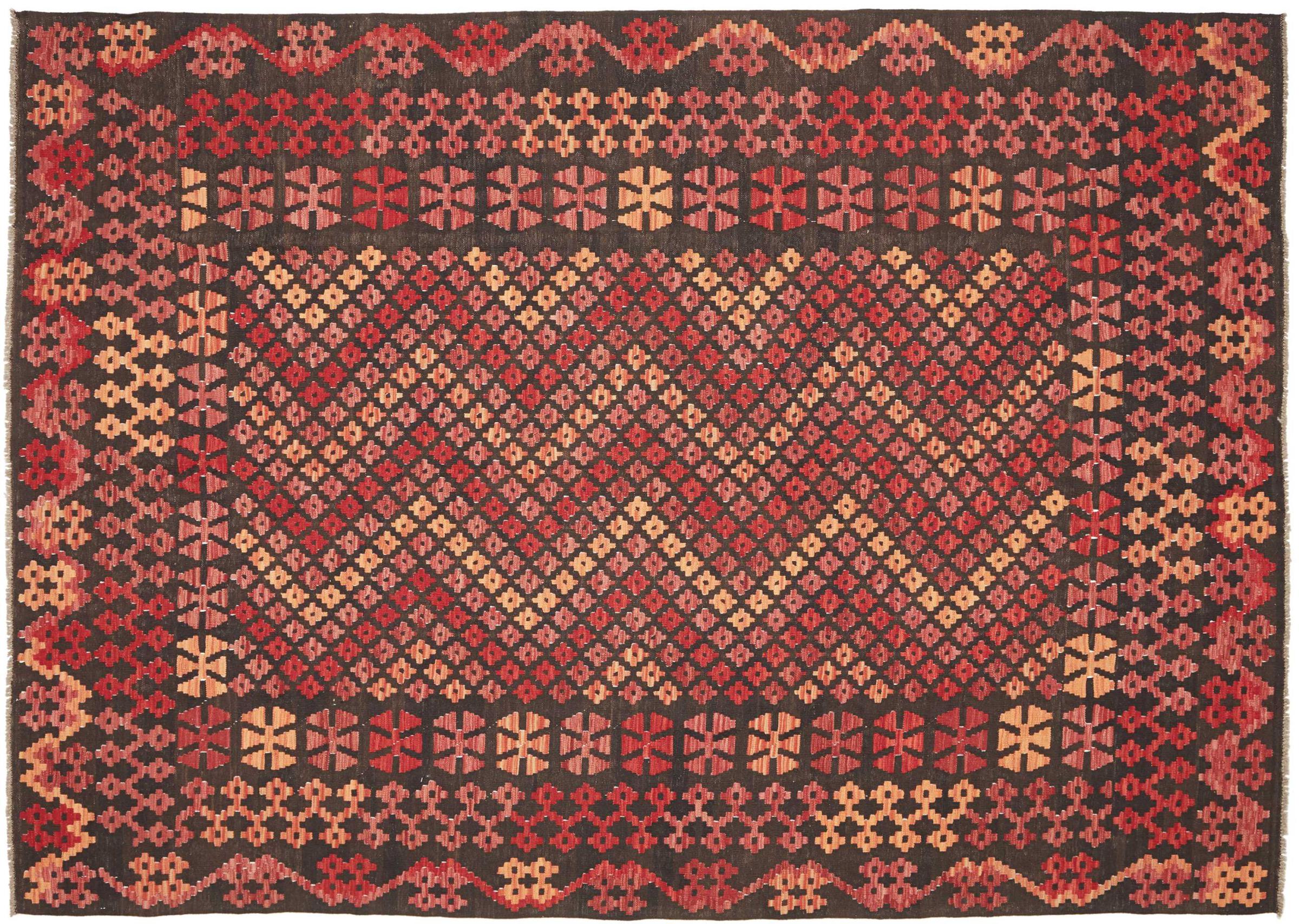 Questo kilim - afghano tessuto a mano è bello sia per i suoi colori e sia per il modello tipico. È stato tessuto a mano in Afghanistan con il 100% di lana. È anche robusto e durevole. Un vero e proprio profitto per voi e per la vostra casa.