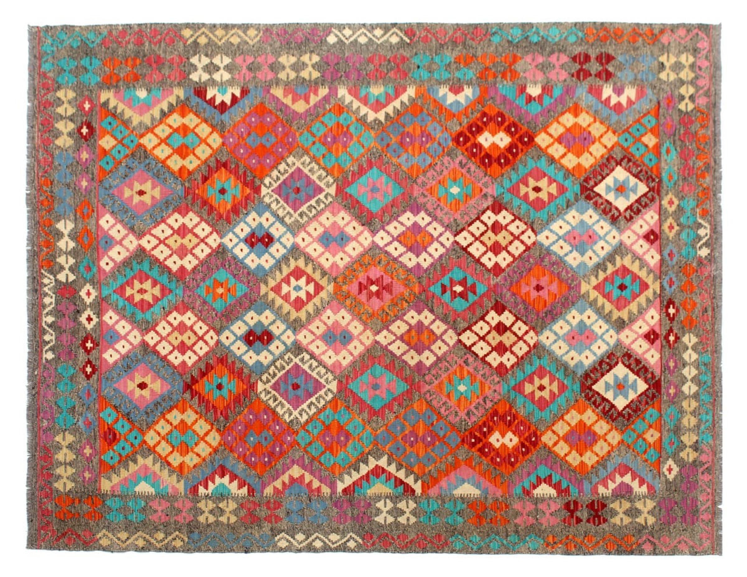 Questo kilim - afghano tessuto a mano è bello sia per i suoi colori e sia per il modello tipico. È stato tessuto a mano in Afghanistan con il 100% di lana. È anche robusto e durevole. Un vero e proprio profitto per voi e per la vostra casa.