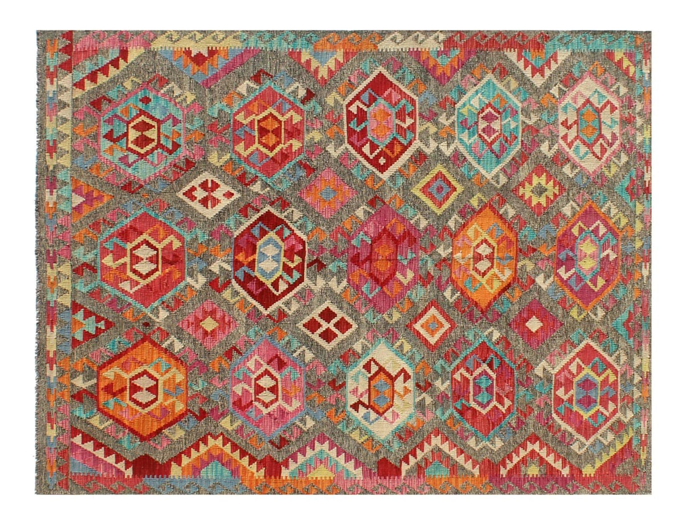 Questo kilim - afghano tessuto a mano è bello sia per i suoi colori e sia per il modello tipico. È stato tessuto a mano in Afghanistan con il 100% di lana. È anche robusto e durevole. Un vero e proprio profitto per voi e per la vostra casa.