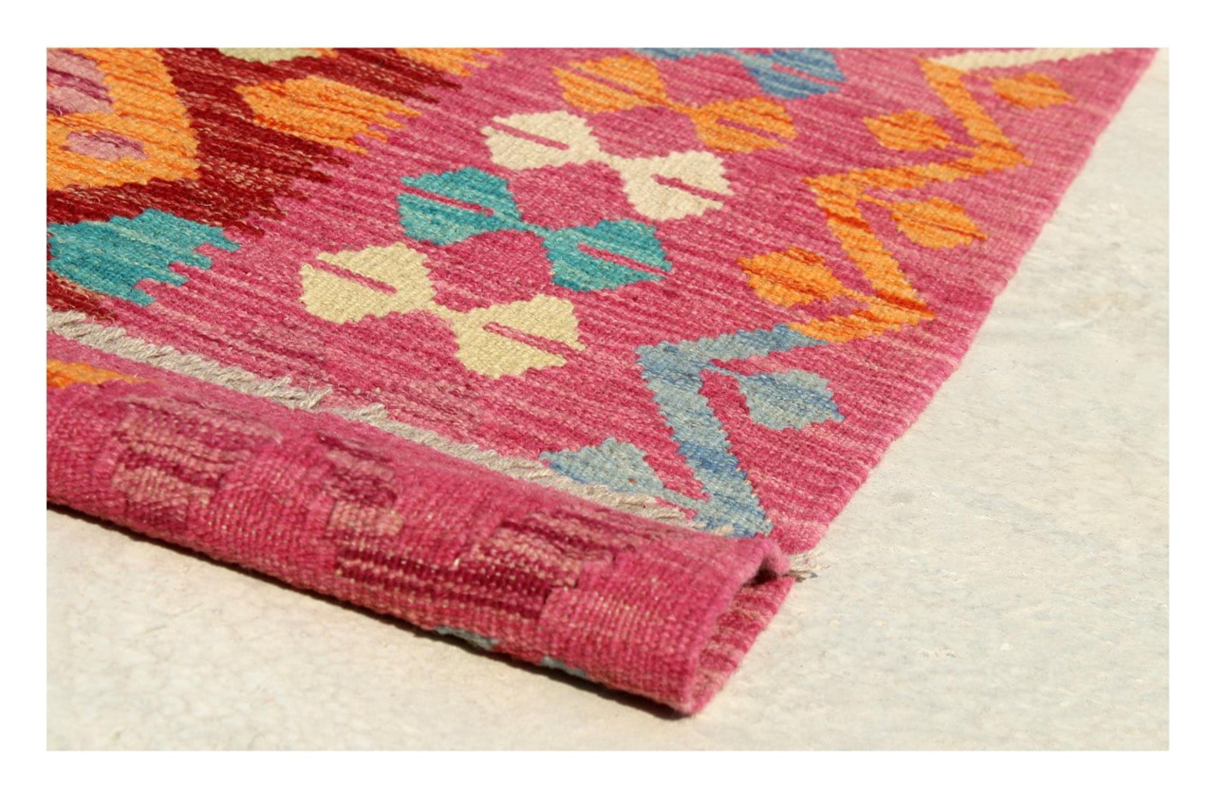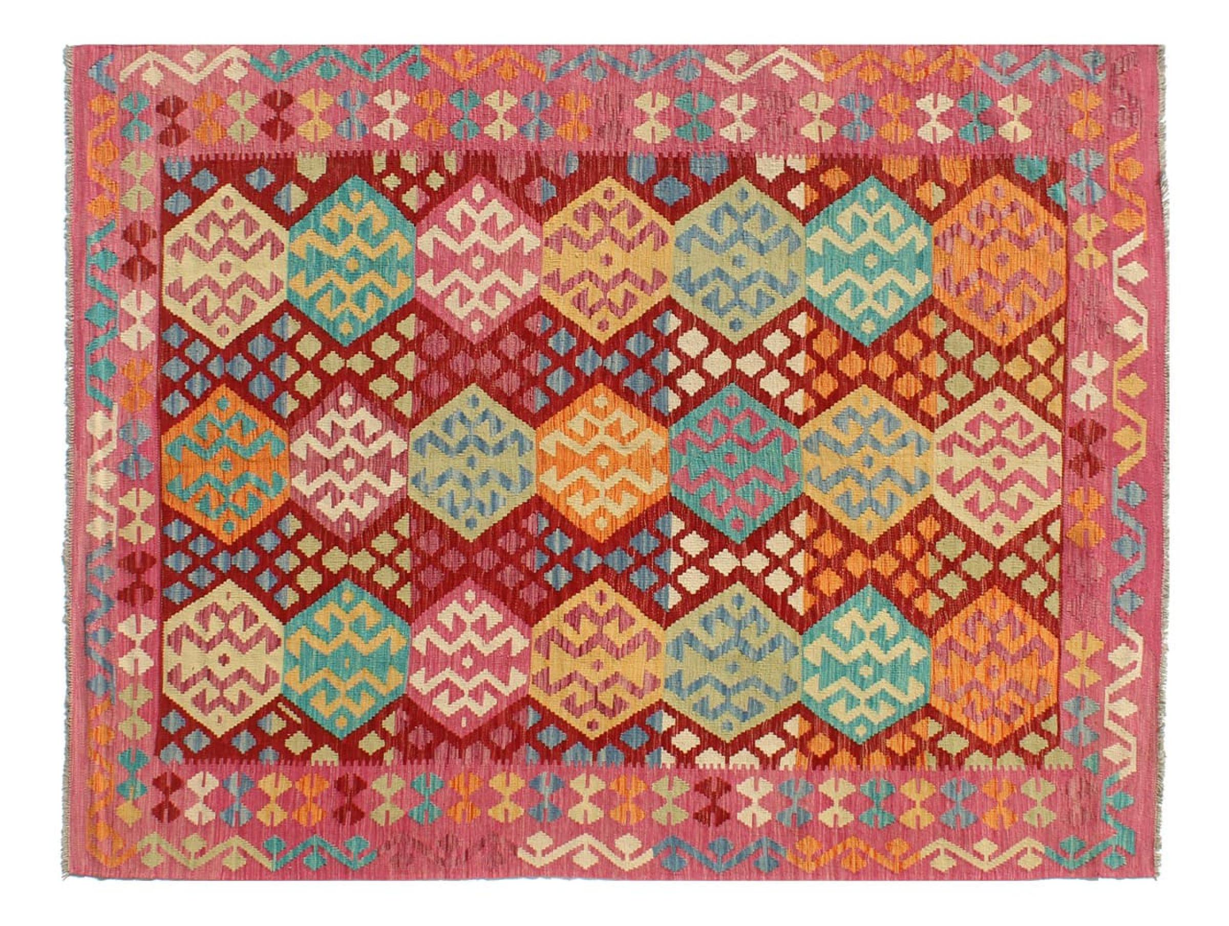 Questo kilim - afghano tessuto a mano è bello sia per i suoi colori e sia per il modello tipico. È stato tessuto a mano in Afghanistan con il 100% di lana. È anche robusto e durevole. Un vero e proprio profitto per voi e per la vostra casa.