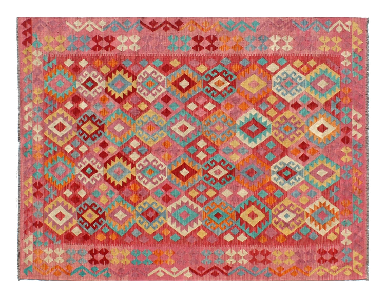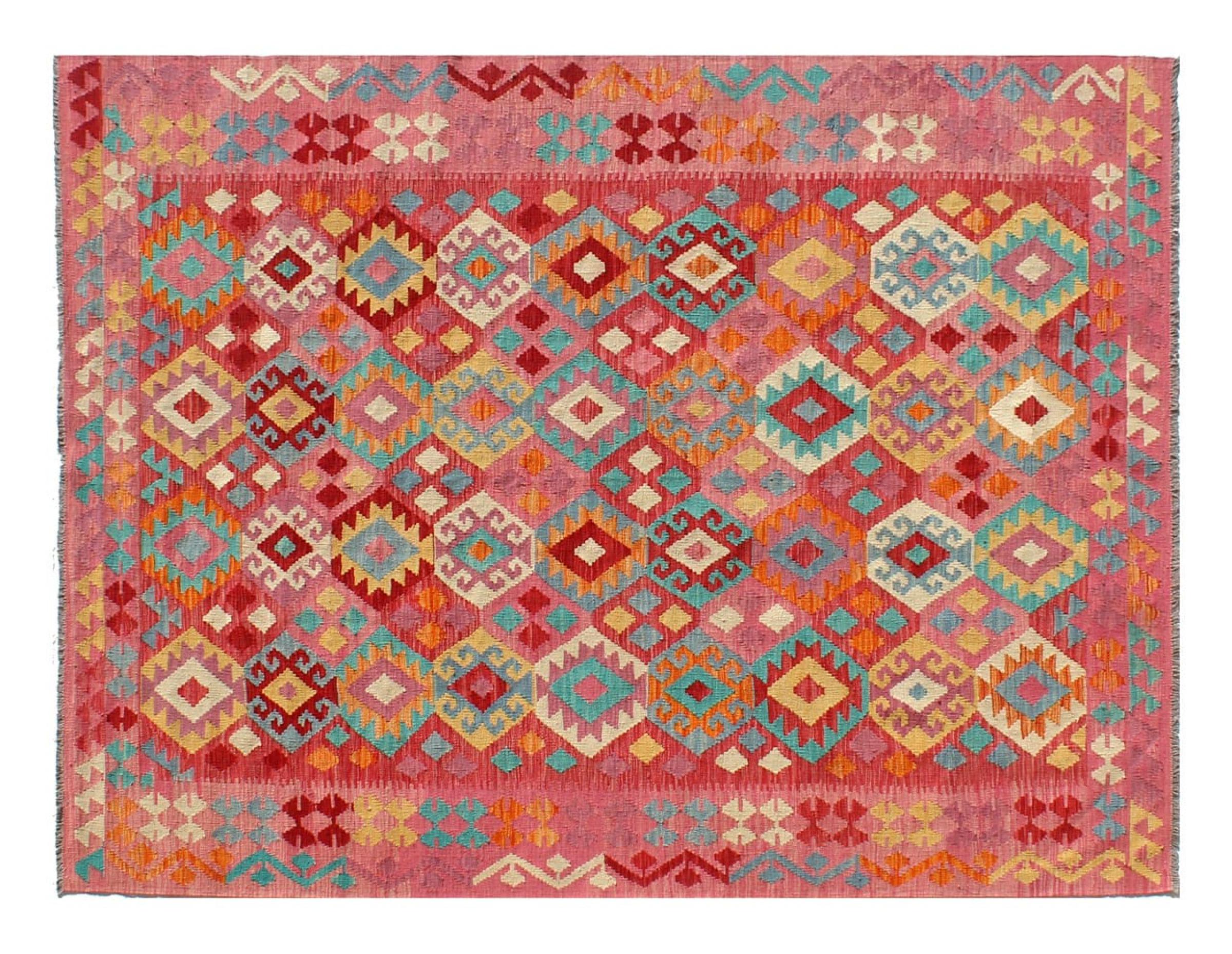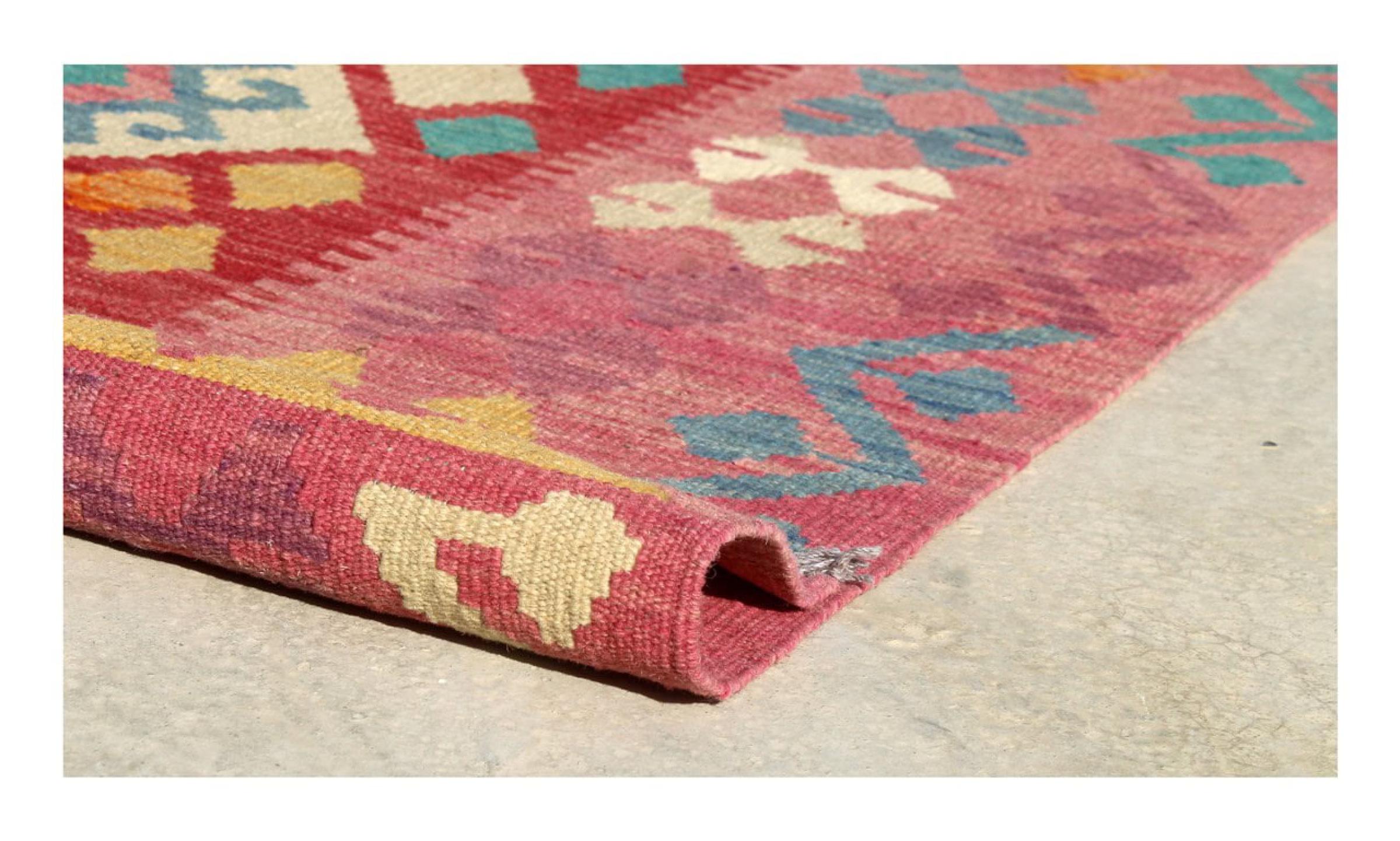 Questo kilim - afghano tessuto a mano è bello sia per i suoi colori e sia per il modello tipico. È stato tessuto a mano in Afghanistan con il 100% di lana. È anche robusto e durevole. Un vero e proprio profitto per voi e per la vostra casa.