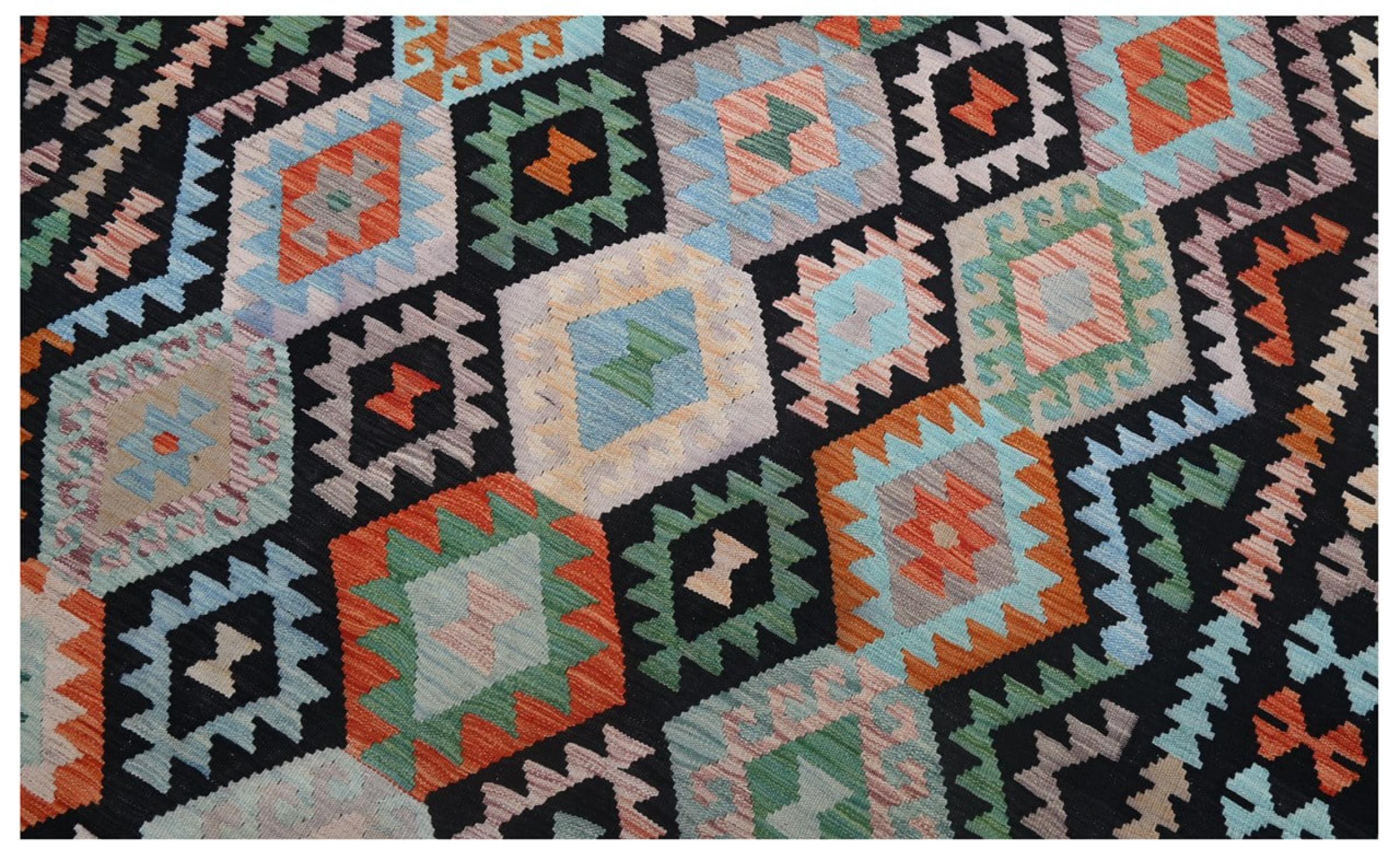 Questo kilim - afghano tessuto a mano è bello sia per i suoi colori e sia per il modello tipico. È stato tessuto a mano in Afghanistan con il 100% di lana. È anche robusto e durevole. Un vero e proprio profitto per voi e per la vostra casa.