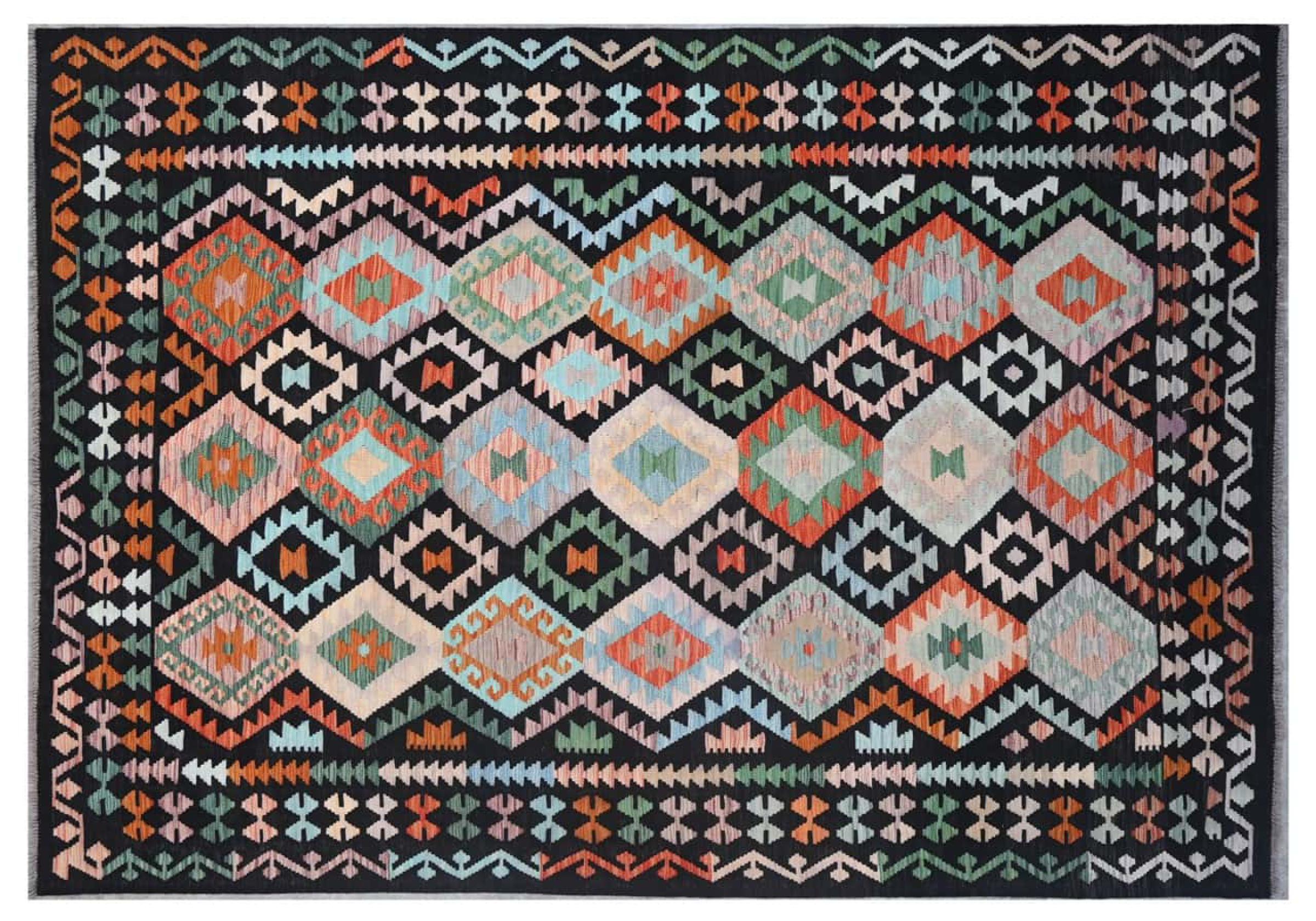 Questi tappeti kilim mostrano una differenza decisiva rispetto ai tappeti annodati a mano - sono tessuti a mano. Non hanno quindi un pelo alto di lana e sono spesso più piatti e ruvidi dei tappeti di lana annodati. La loro realizzazione è meno elaborata e quindi di solito sono molto più economici. Come vantaggio, i tappeti kilim sono anche molto più leggeri e possono essere stesi sia davanti che dietro. I kilim tessuti a mano provengono dall'ex Persia e ora sono spesso prodotti anche in Afghanistan. Hanno dei disegni piuttosto semplici e semplici, che sono dovuti alla loro tecnica di tessitura.