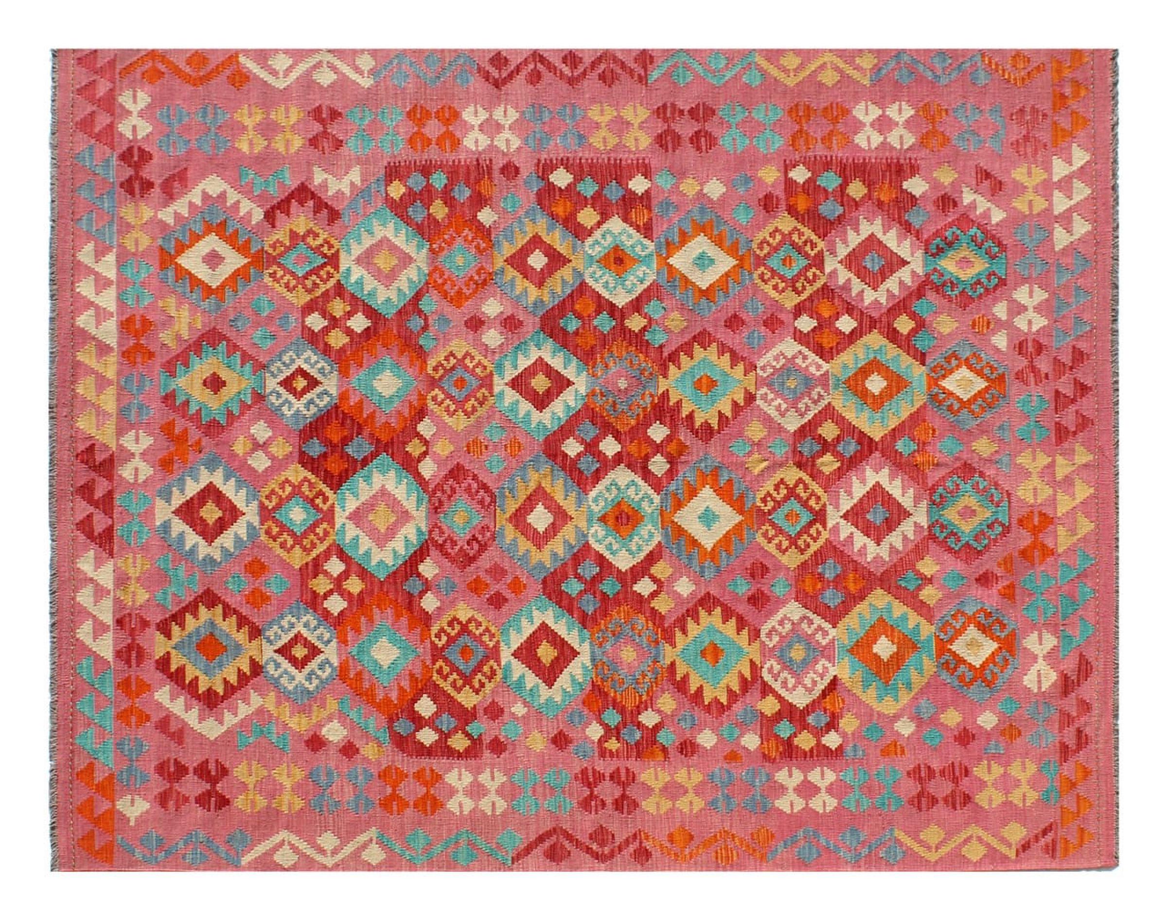 Questo kilim - afghano tessuto a mano è bello sia per i suoi colori e sia per il modello tipico. È stato tessuto a mano in Afghanistan con il 100% di lana. È anche robusto e durevole. Un vero e proprio profitto per voi e per la vostra casa.