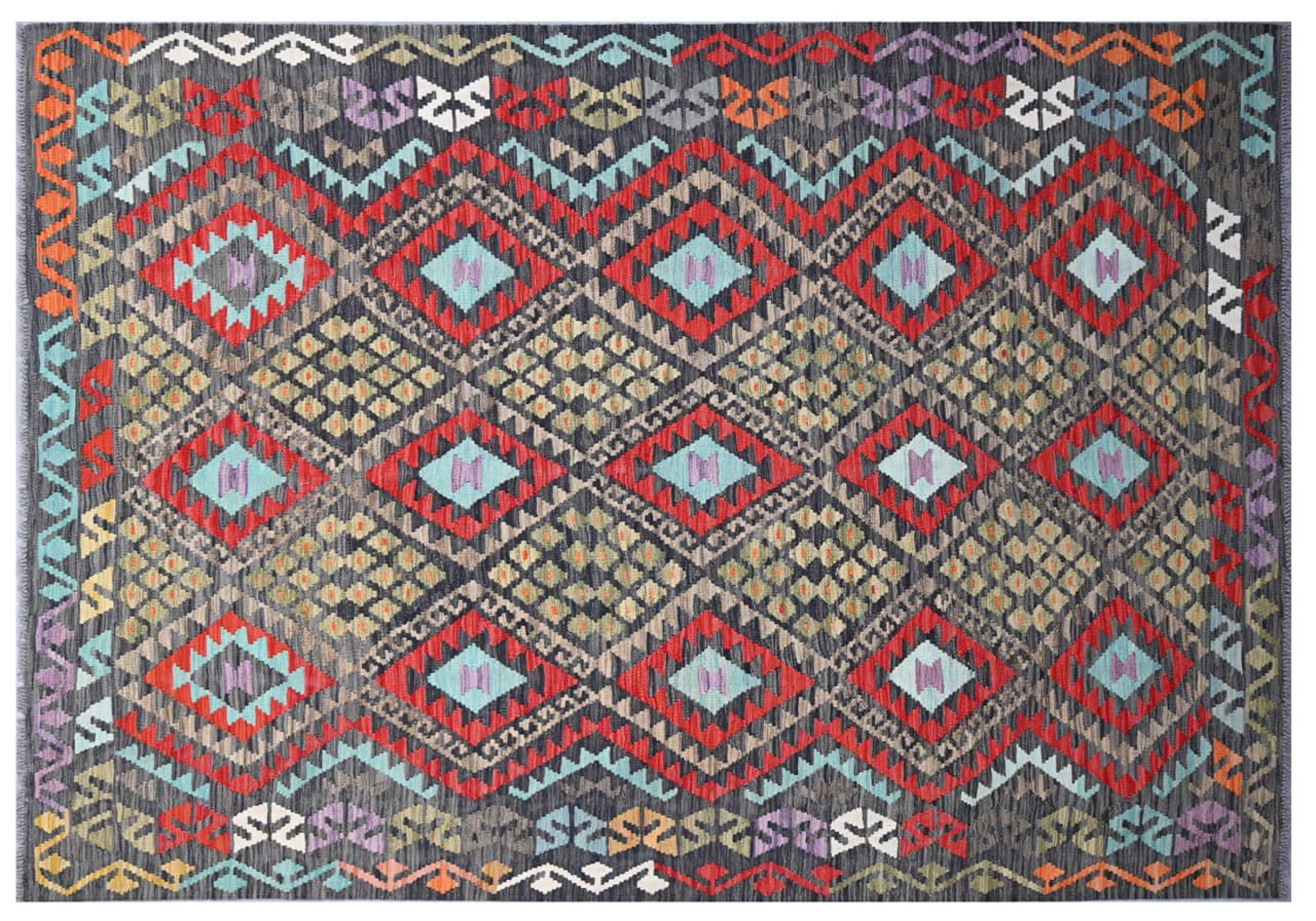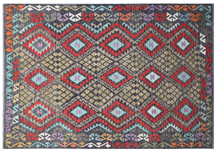 Questo kilim - afghano tessuto a mano è bello sia per i suoi colori e sia per il modello tipico. È stato tessuto a mano in Afghanistan con il 100% di lana. È anche robusto e durevole. Un vero e proprio profitto per voi e per la vostra casa.