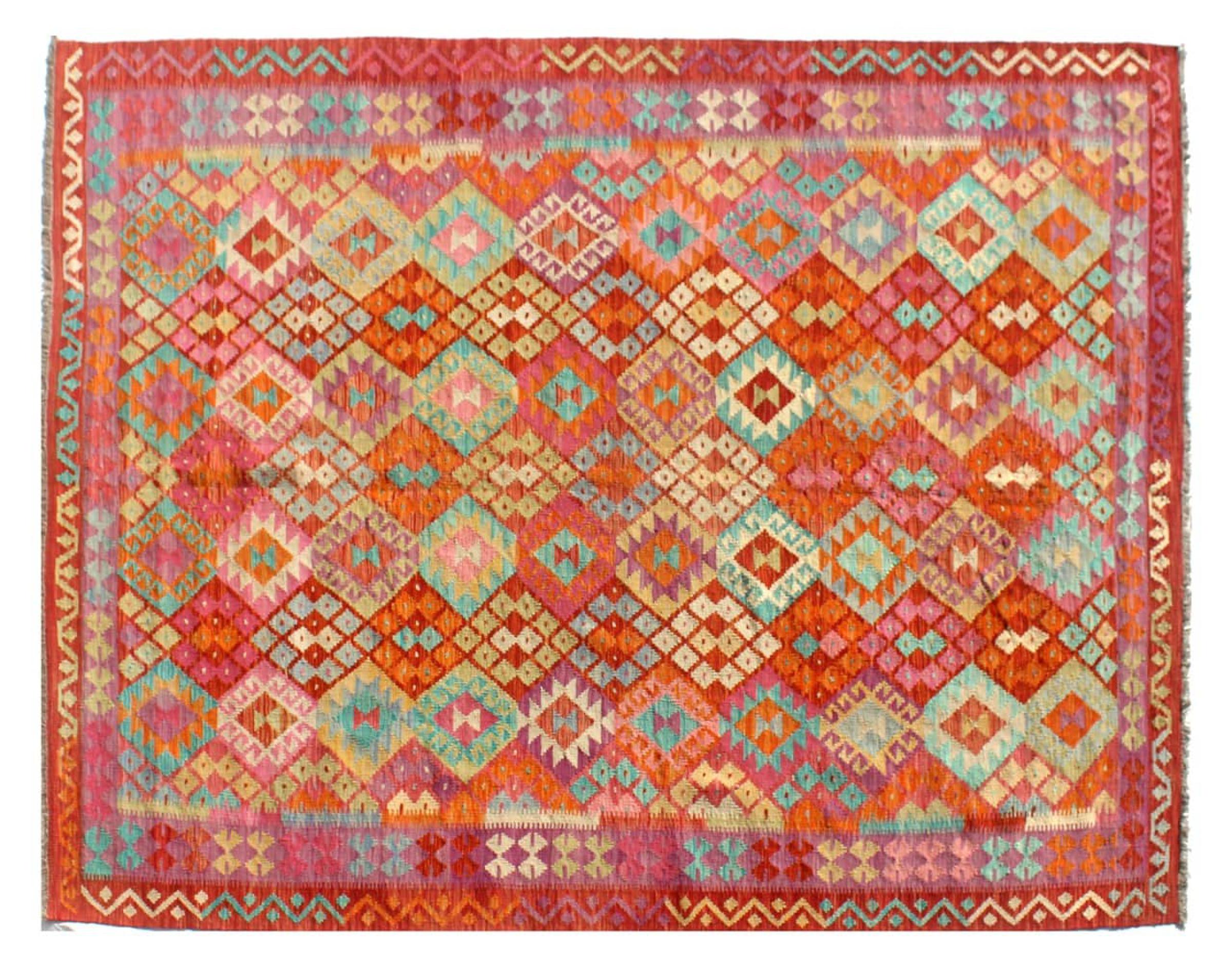 Questo kilim - afghano tessuto a mano è bello sia per i suoi colori e sia per il modello tipico. È stato tessuto a mano in Afghanistan con il 100% di lana. È anche robusto e durevole. Un vero e proprio profitto per voi e per la vostra casa.