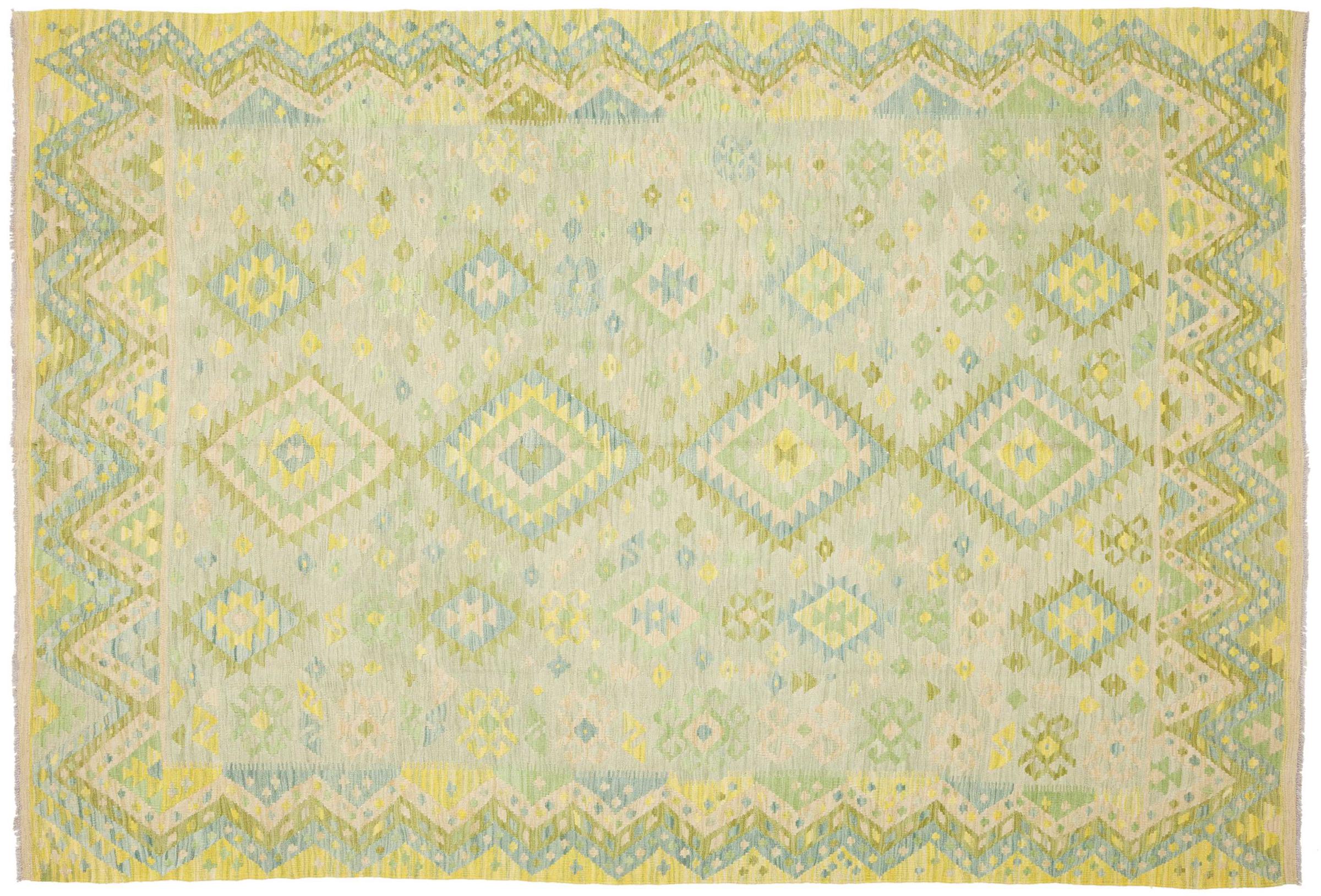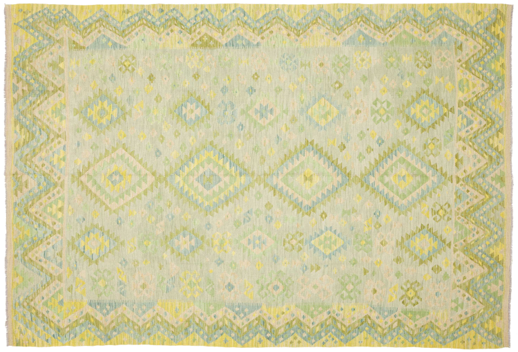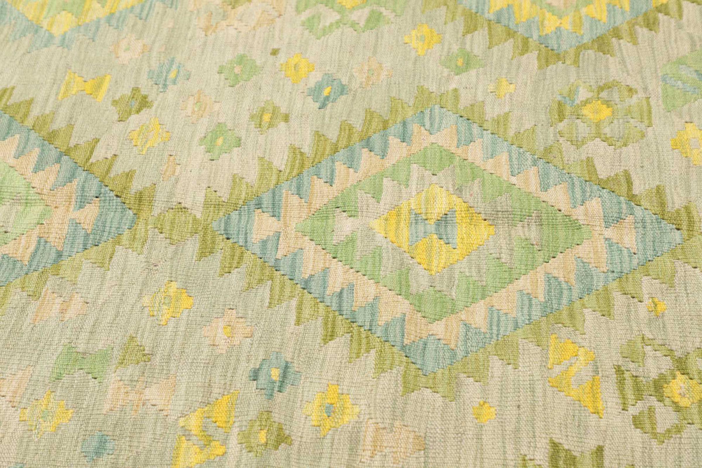 Questo kilim - afghano tessuto a mano è bello sia per i suoi colori e sia per il modello tipico. È stato tessuto a mano in Afghanistan con il 100% di lana. È anche robusto e durevole. Un vero e proprio profitto per voi e per la vostra casa.
