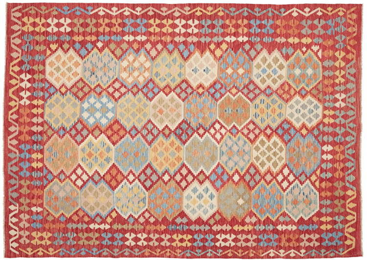 Questi tappeti kilim mostrano una differenza decisiva rispetto ai tappeti annodati a mano - sono tessuti a mano. Non hanno quindi un pelo alto di lana e sono spesso più piatti e ruvidi dei tappeti di lana annodati. La loro realizzazione è meno elaborata e quindi di solito sono molto più economici. Come vantaggio, i tappeti kilim sono anche molto più leggeri e possono essere stesi sia davanti che dietro. I kilim tessuti a mano provengono dall'ex Persia e ora sono spesso prodotti anche in Afghanistan. Hanno dei disegni piuttosto semplici e semplici, che sono dovuti alla loro tecnica di tessitura.