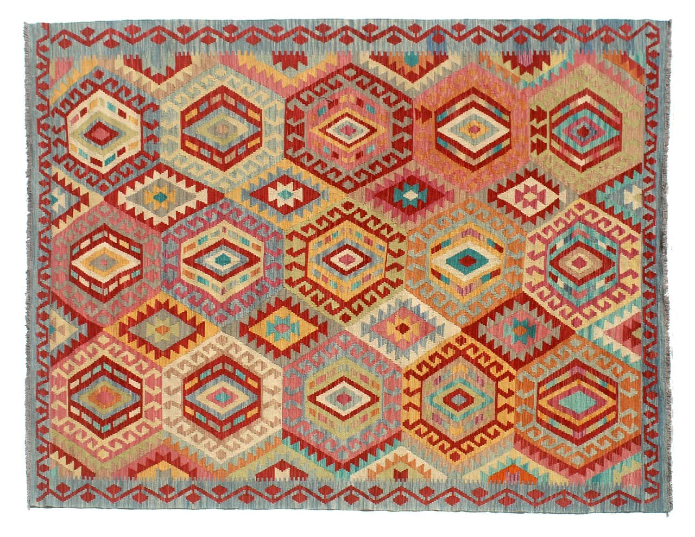 Questo kilim - afghano tessuto a mano è bello sia per i suoi colori e sia per il modello tipico. È stato tessuto a mano in Afghanistan con il 100% di lana. È anche robusto e durevole. Un vero e proprio profitto per voi e per la vostra casa.