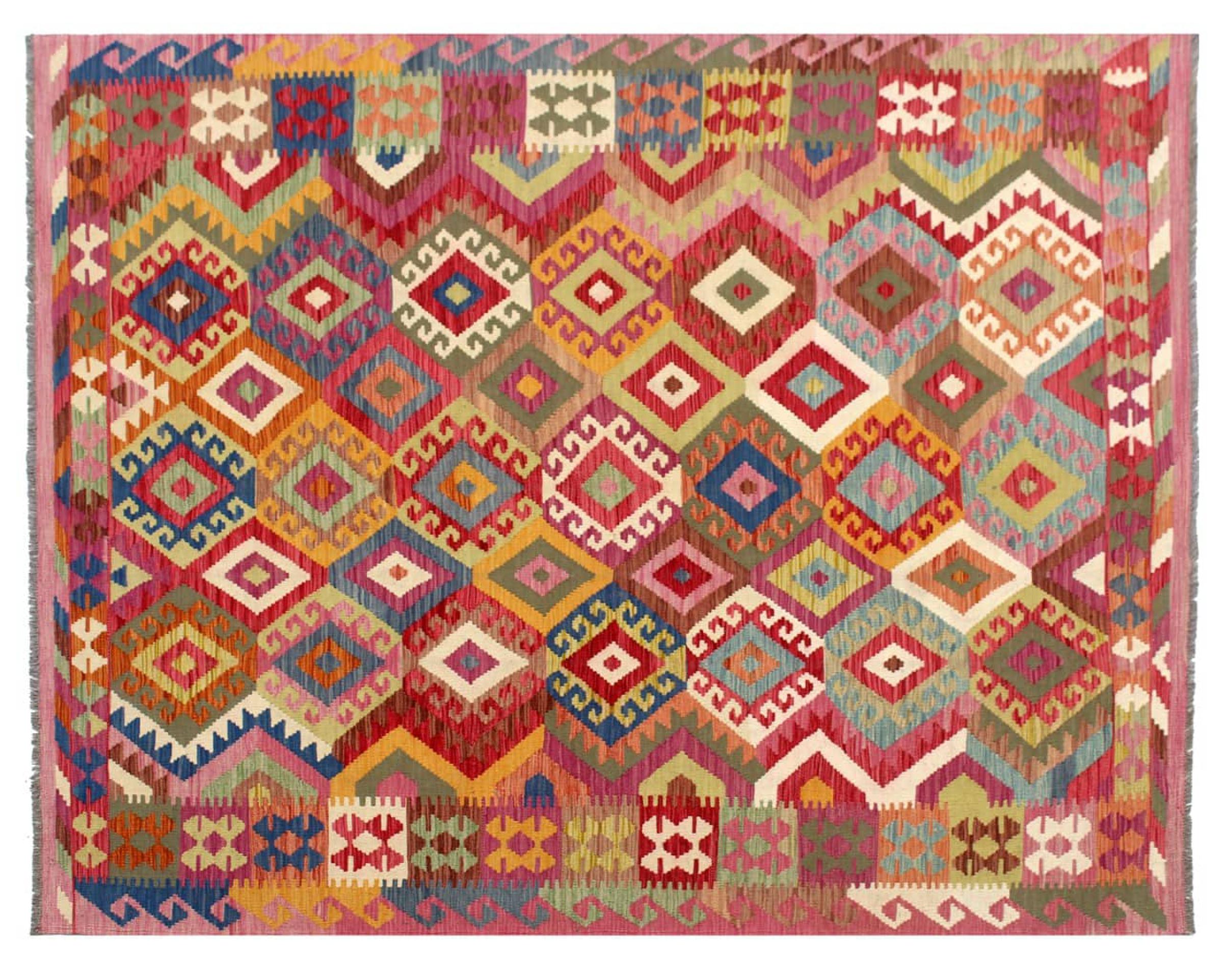 Questi tappeti kilim mostrano una differenza decisiva rispetto ai tappeti annodati a mano - sono tessuti a mano. Non hanno quindi un pelo alto di lana e sono spesso più piatti e ruvidi dei tappeti di lana annodati. La loro realizzazione è meno elaborata e quindi di solito sono molto più economici. Come vantaggio, i tappeti kilim sono anche molto più leggeri e possono essere stesi sia davanti che dietro. I kilim tessuti a mano provengono dall'ex Persia e ora sono spesso prodotti anche in Afghanistan. Hanno dei disegni piuttosto semplici e semplici, che sono dovuti alla loro tecnica di tessitura.