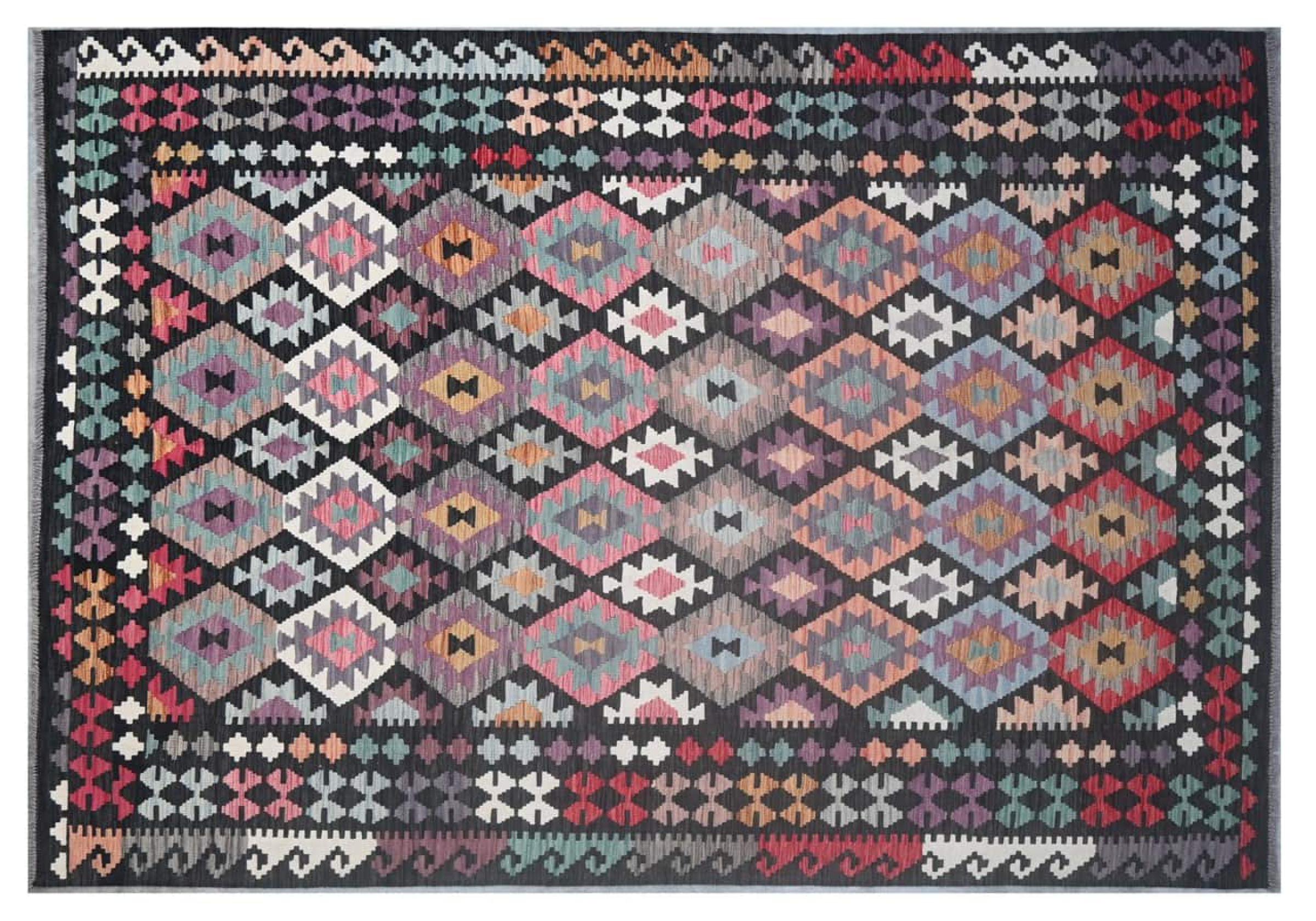 Questo kilim - afghano tessuto a mano è bello sia per i suoi colori e sia per il modello tipico. È stato tessuto a mano in Afghanistan con il 100% di lana. È anche robusto e durevole. Un vero e proprio profitto per voi e per la vostra casa.
