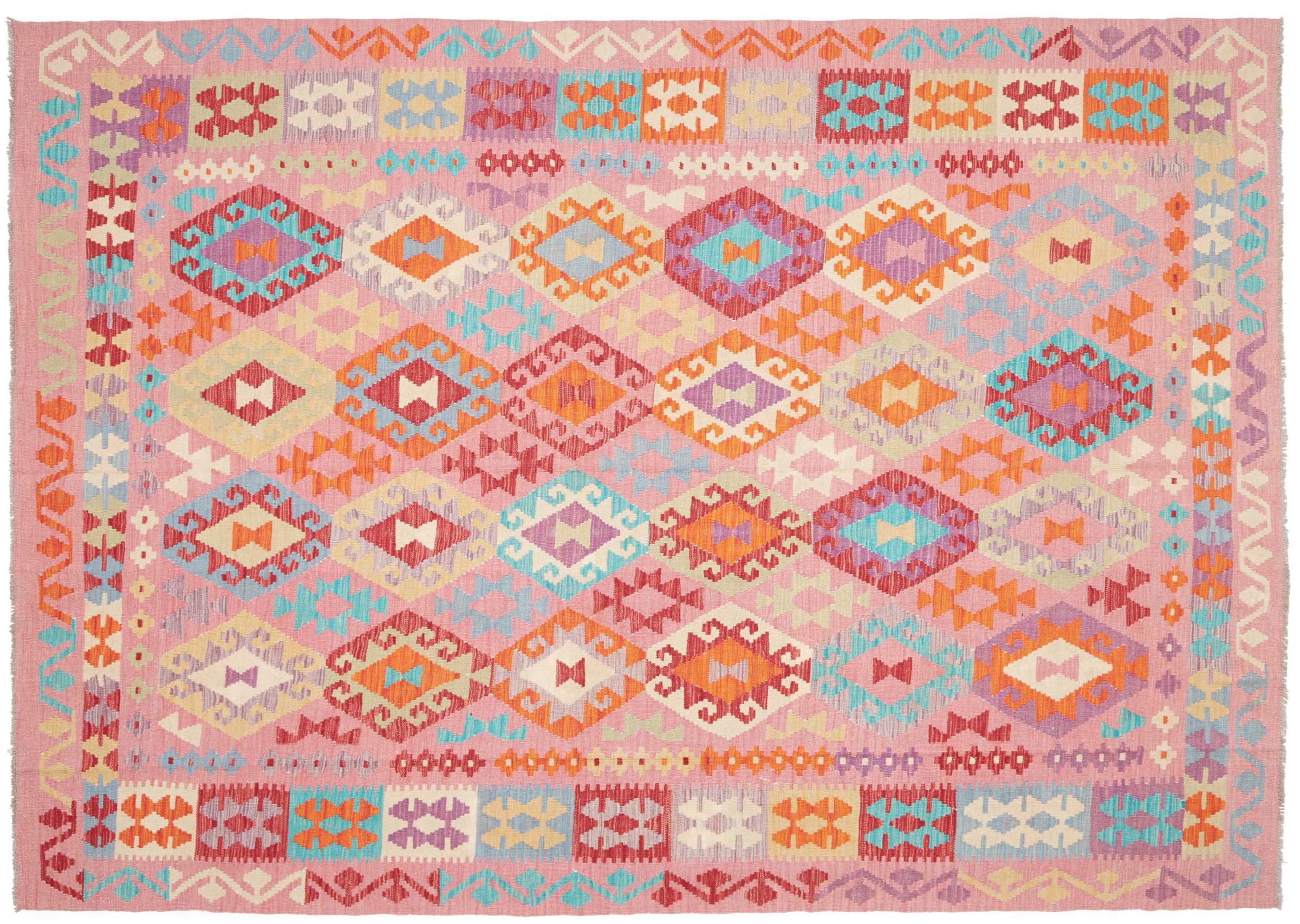 Questo kilim - afghano tessuto a mano è bello sia per i suoi colori e sia per il modello tipico. È stato tessuto a mano in Afghanistan con il 100% di lana. È anche robusto e durevole. Un vero e proprio profitto per voi e per la vostra casa.
