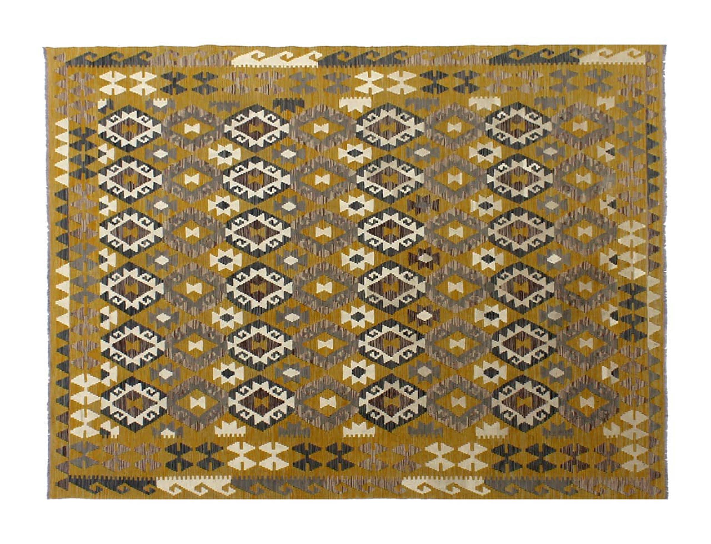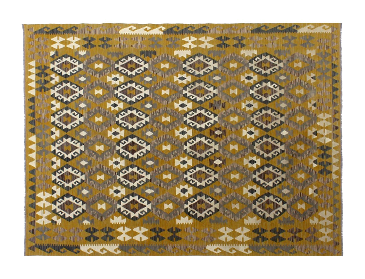 Questi tappeti kilim mostrano una differenza decisiva rispetto ai tappeti annodati a mano - sono tessuti a mano. Non hanno quindi un pelo alto di lana e sono spesso più piatti e ruvidi dei tappeti di lana annodati. La loro realizzazione è meno elaborata e quindi di solito sono molto più economici. Come vantaggio, i tappeti kilim sono anche molto più leggeri e possono essere stesi sia davanti che dietro. I kilim tessuti a mano provengono dall'ex Persia e ora sono spesso prodotti anche in Afghanistan. Hanno dei disegni piuttosto semplici e semplici, che sono dovuti alla loro tecnica di tessitura.
