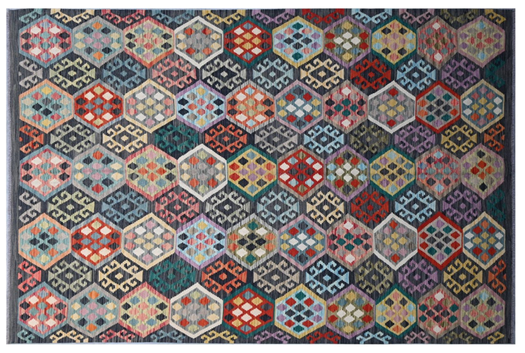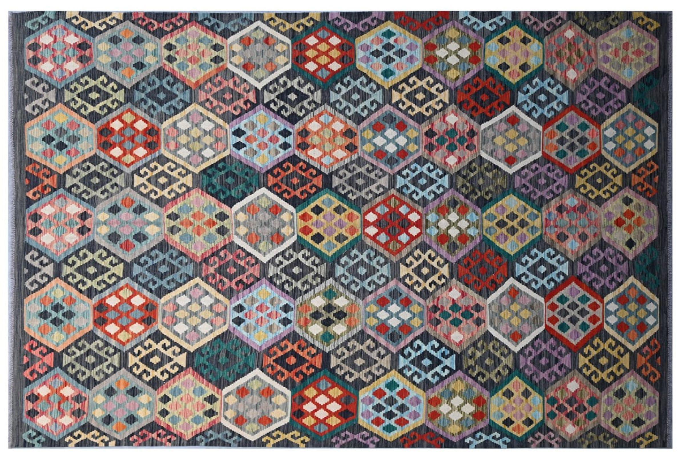 Questo kilim - afghano tessuto a mano è bello sia per i suoi colori e sia per il modello tipico. È stato tessuto a mano in Afghanistan con il 100% di lana. È anche robusto e durevole. Un vero e proprio profitto per voi e per la vostra casa.