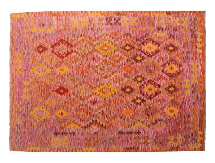 Questi tappeti kilim mostrano una differenza decisiva rispetto ai tappeti annodati a mano - sono tessuti a mano. Non hanno quindi un pelo alto di lana e sono spesso più piatti e ruvidi dei tappeti di lana annodati. La loro realizzazione è meno elaborata e quindi di solito sono molto più economici. Come vantaggio, i tappeti kilim sono anche molto più leggeri e possono essere stesi sia davanti che dietro. I kilim tessuti a mano provengono dall'ex Persia e ora sono spesso prodotti anche in Afghanistan. Hanno dei disegni piuttosto semplici e semplici, che sono dovuti alla loro tecnica di tessitura.