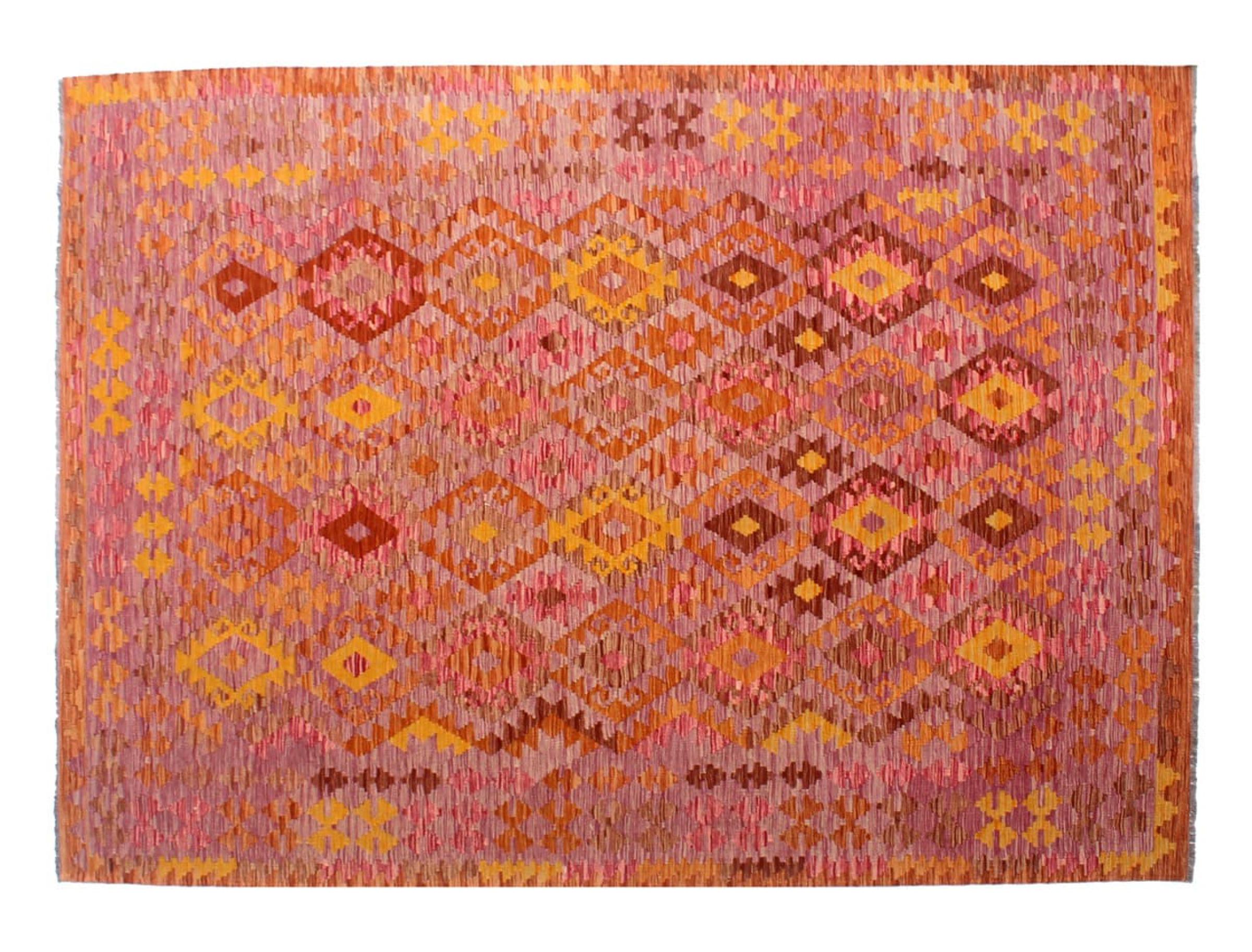 Questo kilim - afghano tessuto a mano è bello sia per i suoi colori e sia per il modello tipico. È stato tessuto a mano in Afghanistan con il 100% di lana. È anche robusto e durevole. Un vero e proprio profitto per voi e per la vostra casa.