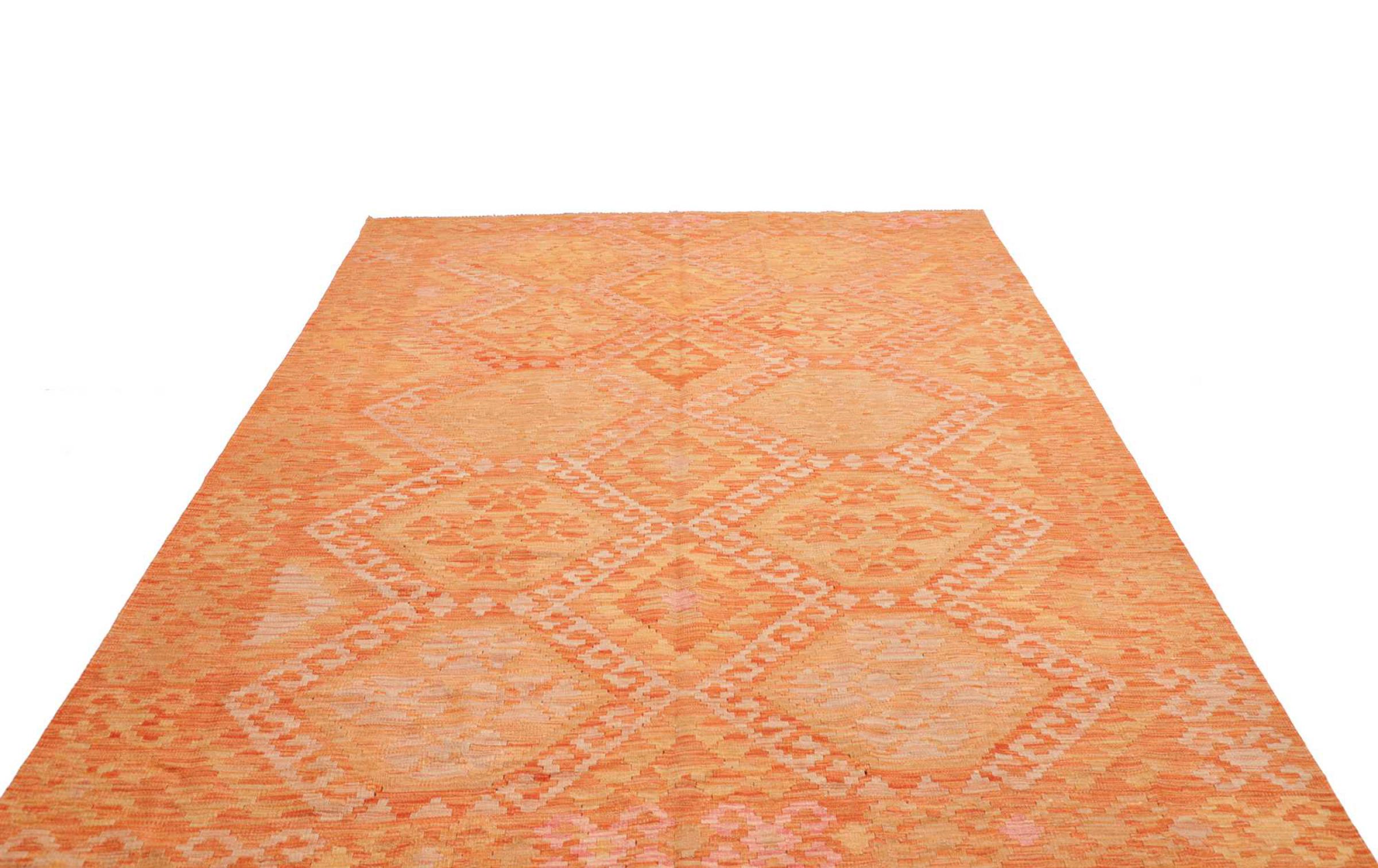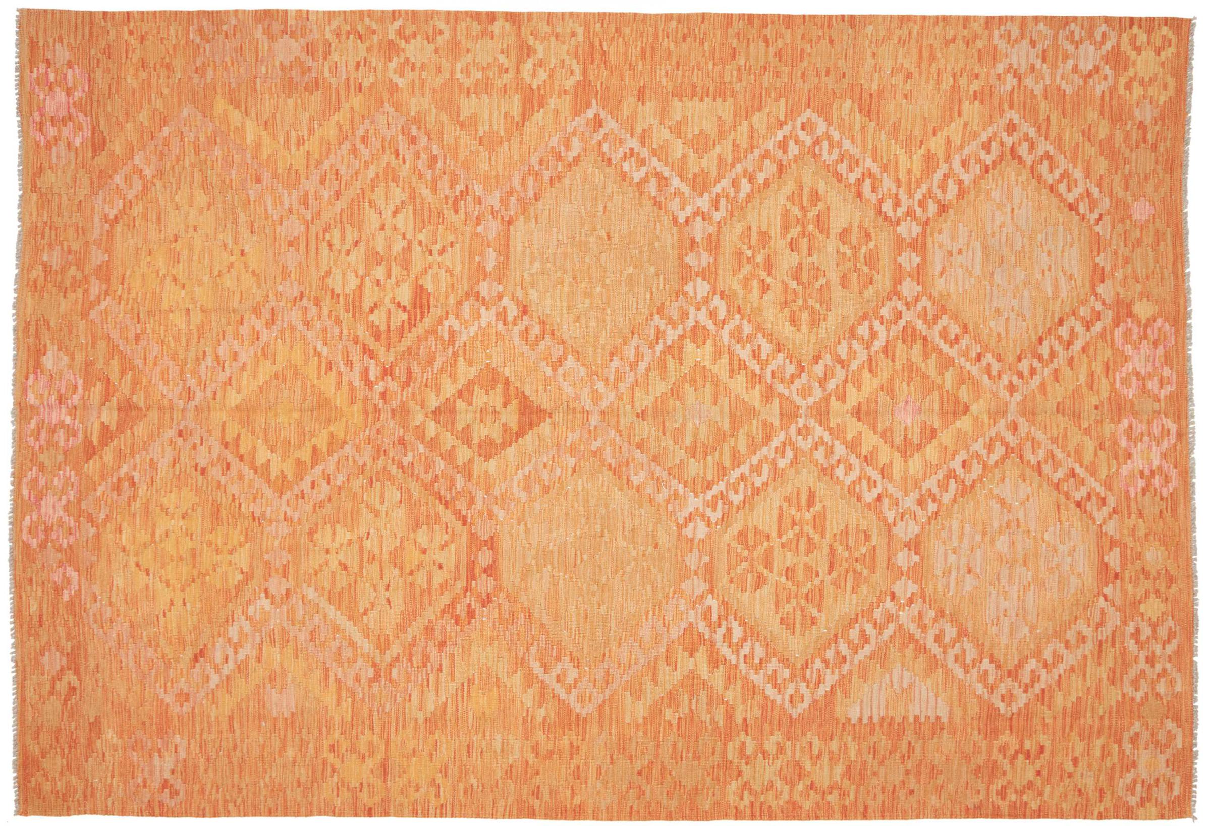 Questo kilim - afghano tessuto a mano è bello sia per i suoi colori e sia per il modello tipico. È stato tessuto a mano in Afghanistan con il 100% di lana. È anche robusto e durevole. Un vero e proprio profitto per voi e per la vostra casa.