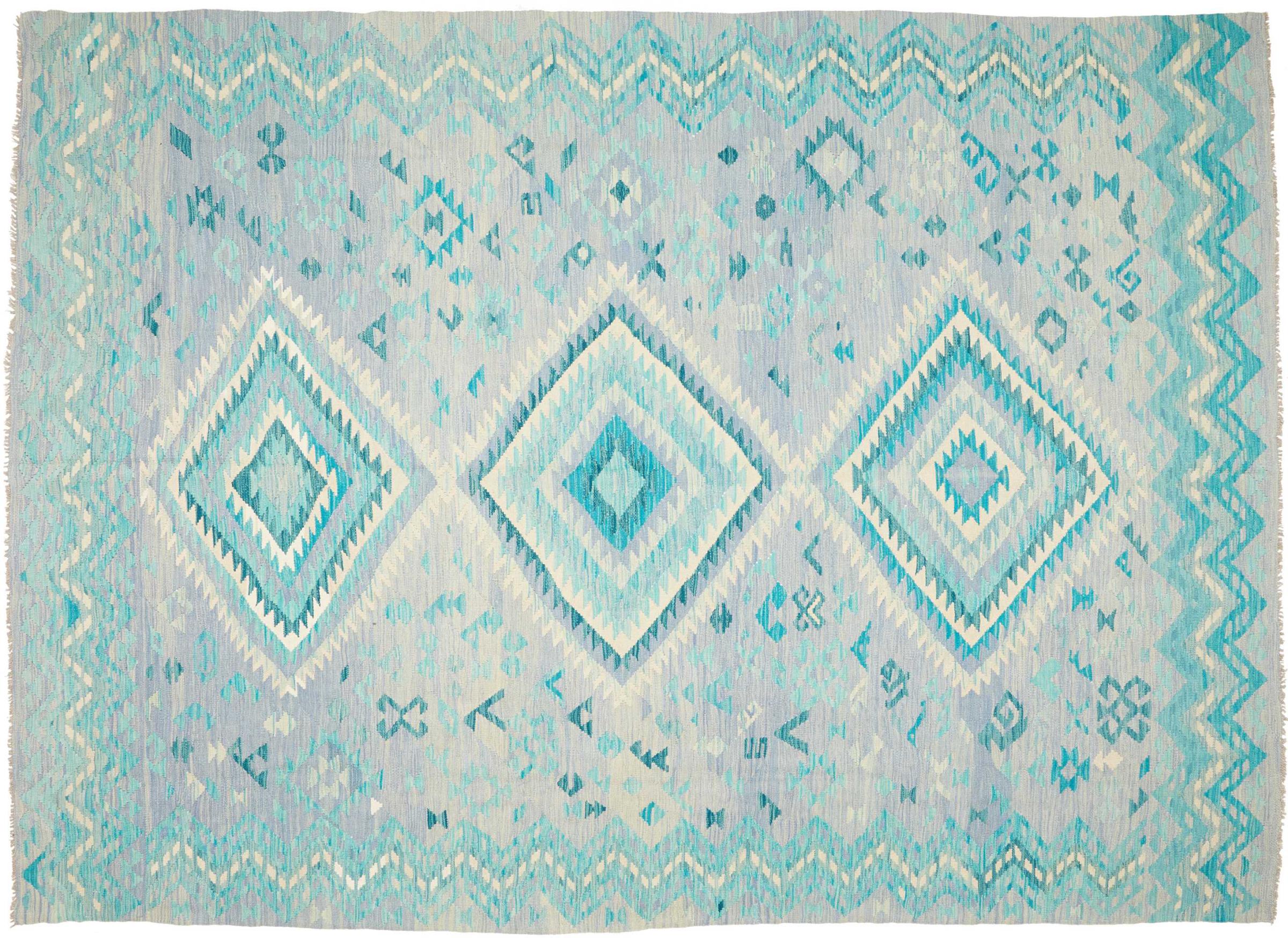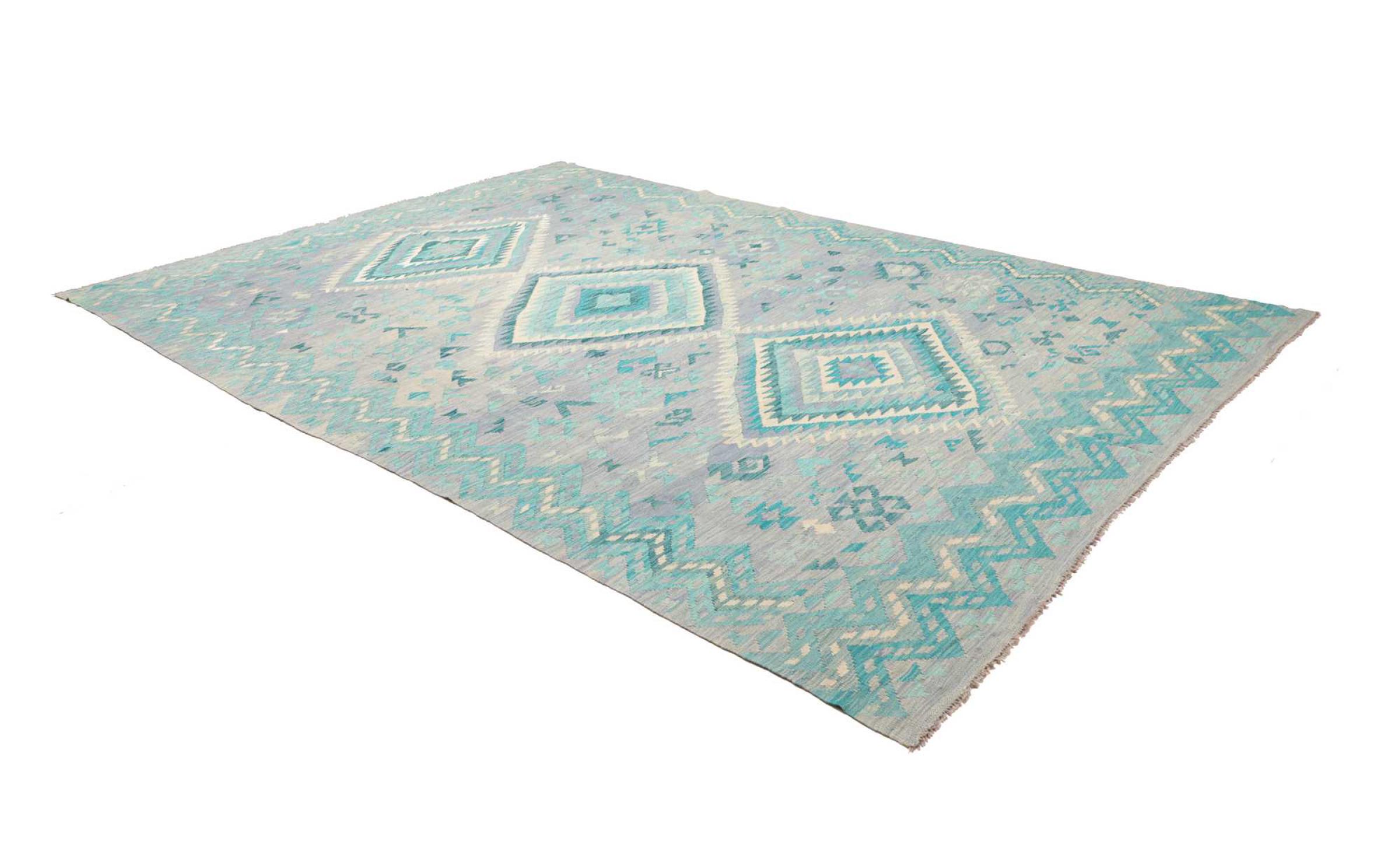 Questo kilim - afghano tessuto a mano è bello sia per i suoi colori e sia per il modello tipico. È stato tessuto a mano in Afghanistan con il 100% di lana. È anche robusto e durevole. Un vero e proprio profitto per voi e per la vostra casa.