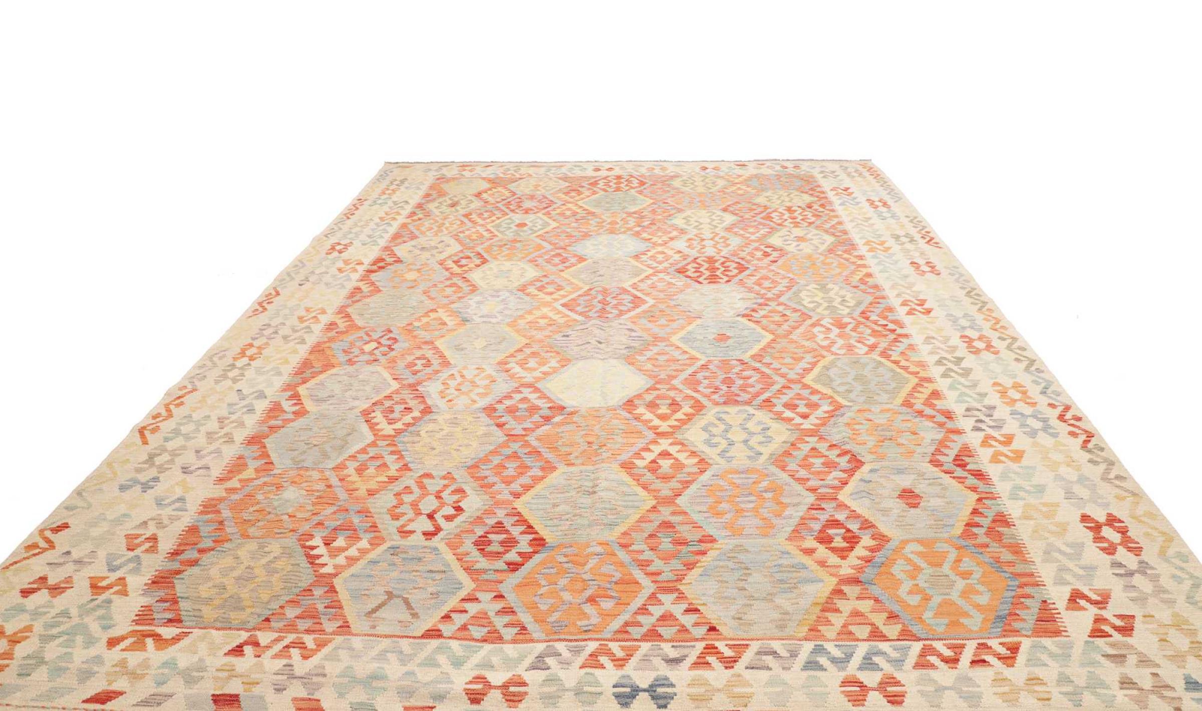 Questi tappeti kilim mostrano una differenza decisiva rispetto ai tappeti annodati a mano - sono tessuti a mano. Non hanno quindi un pelo alto di lana e sono spesso più piatti e ruvidi dei tappeti di lana annodati. La loro realizzazione è meno elaborata e quindi di solito sono molto più economici. Come vantaggio, i tappeti kilim sono anche molto più leggeri e possono essere stesi sia davanti che dietro. I kilim tessuti a mano provengono dall'ex Persia e ora sono spesso prodotti anche in Afghanistan. Hanno dei disegni piuttosto semplici e semplici, che sono dovuti alla loro tecnica di tessitura.