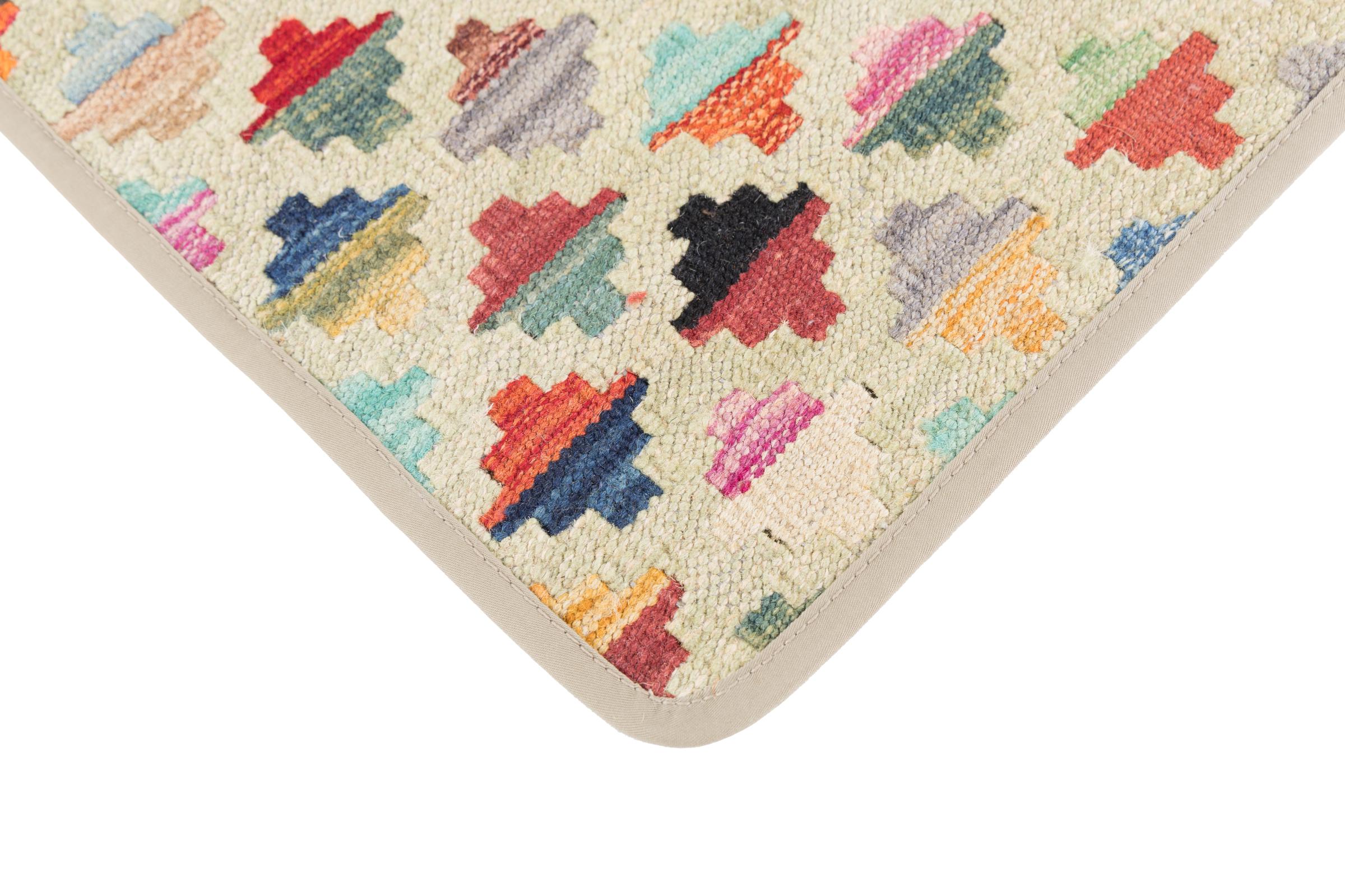 Questo kilim - afghano tessuto a mano è bello sia per i suoi colori e sia per il modello tipico. È stato tessuto a mano in Afghanistan con il 100% di lana. È anche robusto e durevole. Un vero e proprio profitto per voi e per la vostra casa.